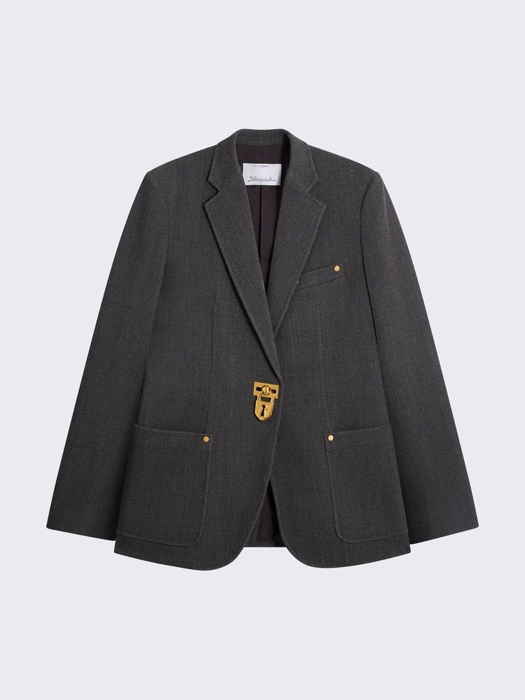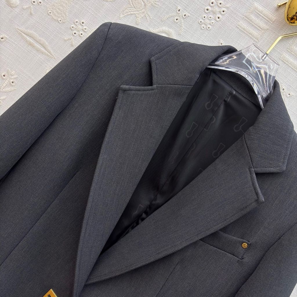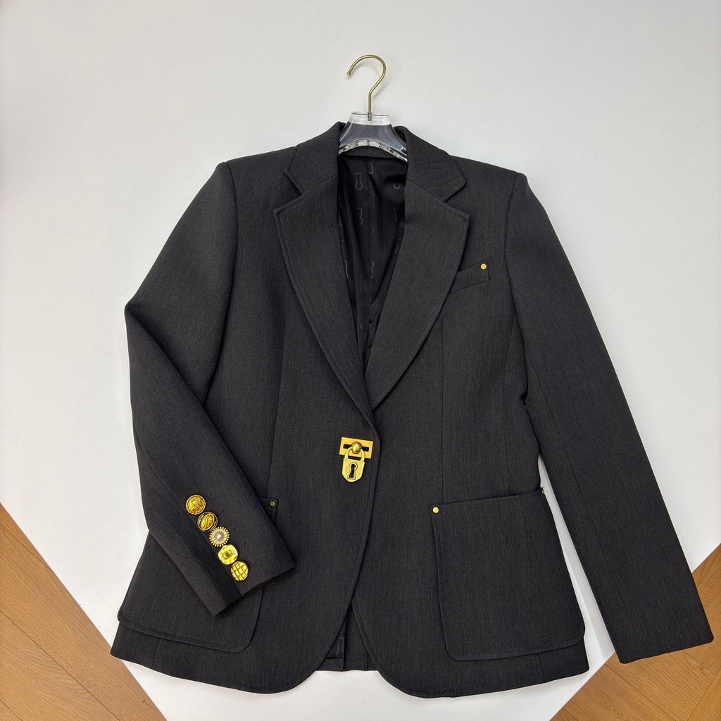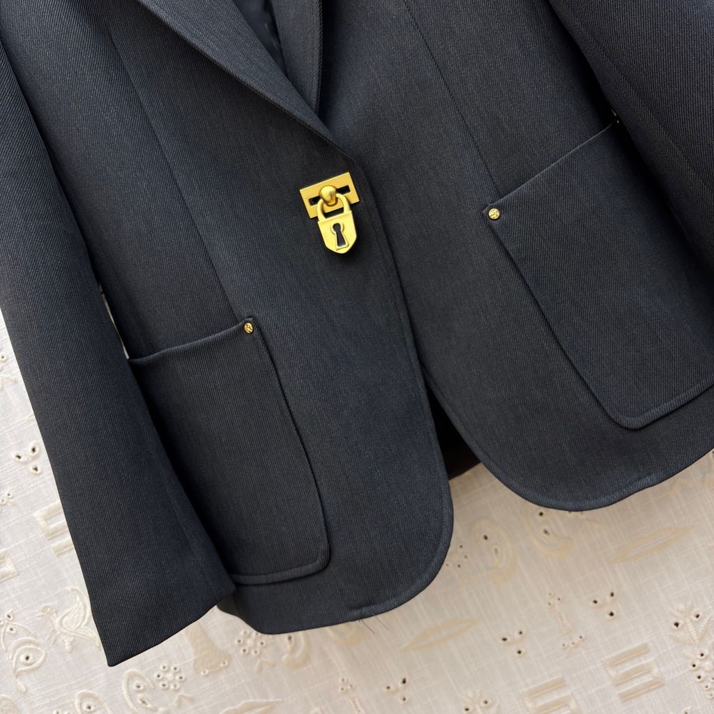 ÁO BLAZER NỮ SCHI* XÁM ĐẬM KHÓA KIM LOẠI VÀNG 2100k (HÀNG ORDER QUỐC TẾ)