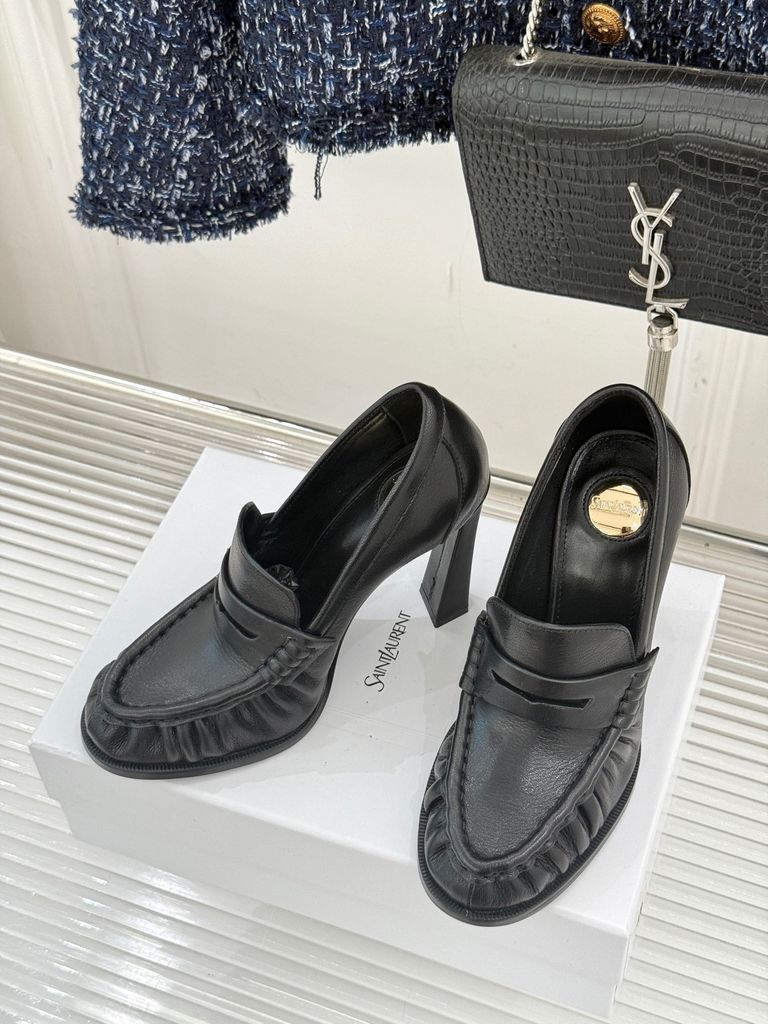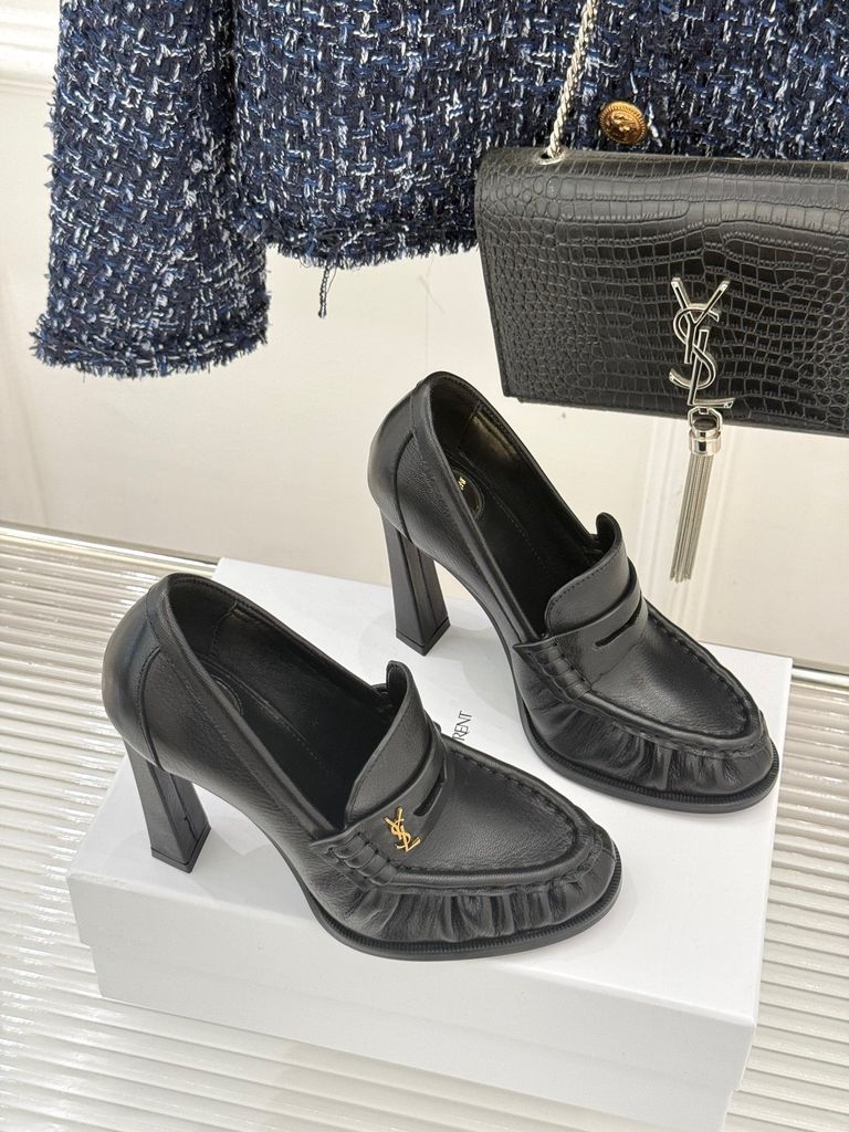 GIÀY LOAFER CAO GÓT NỮ YSL LOGO MINI TINH GIẢN – FORM MŨI HẠNH NHÂN – GÓT 10.5CM 2000k (HÀNG ORDER QUỐC TẾ)