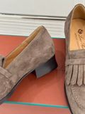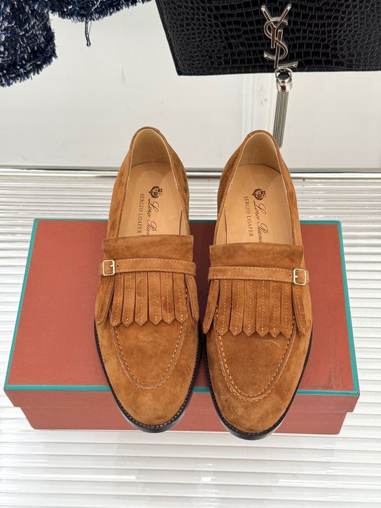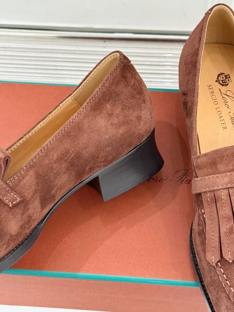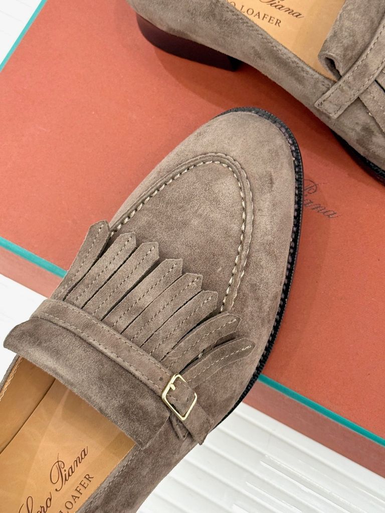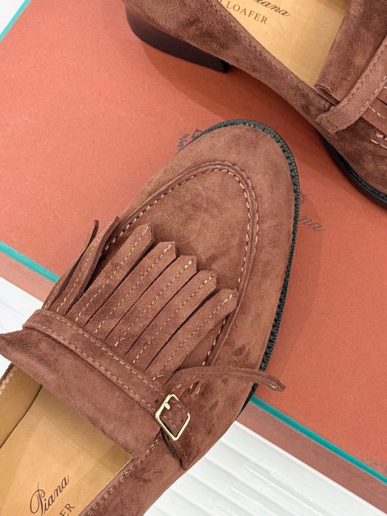 Một đôi loafer da lộn mang tinh thần cổ điển thanh lịch, nhìn tối giản nhưng đủ “đắt” nhờ điểm nhấn tua rua đặc trưng—diện lên là ra ngay khí chất tinh tế.