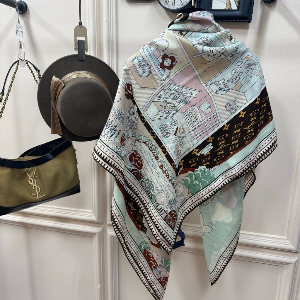 KHĂN CHOÀNG NAM NỮ LV* CASHMERE PHA LỤA – VIỀN CUỐN TAY, NHẸ & ẤM 1400k (HÀNG ORDER QUỐC TẾ)