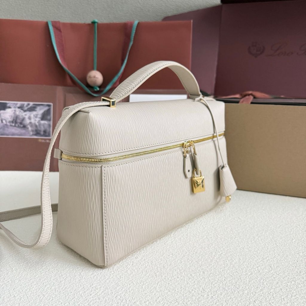 • Đường viền bo mềm, mép sơn cạnh mịn; khoá kéo và chi tiết kim loại tông vàng đánh bóng tạo điểm nhấn cao cấp.