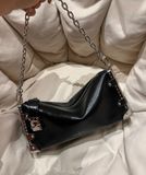 • Góc viền kim loại tán đinh và khóa S-lock ánh bạc nổi bật – hiệu ứng “statement” ngay khi lên tay.