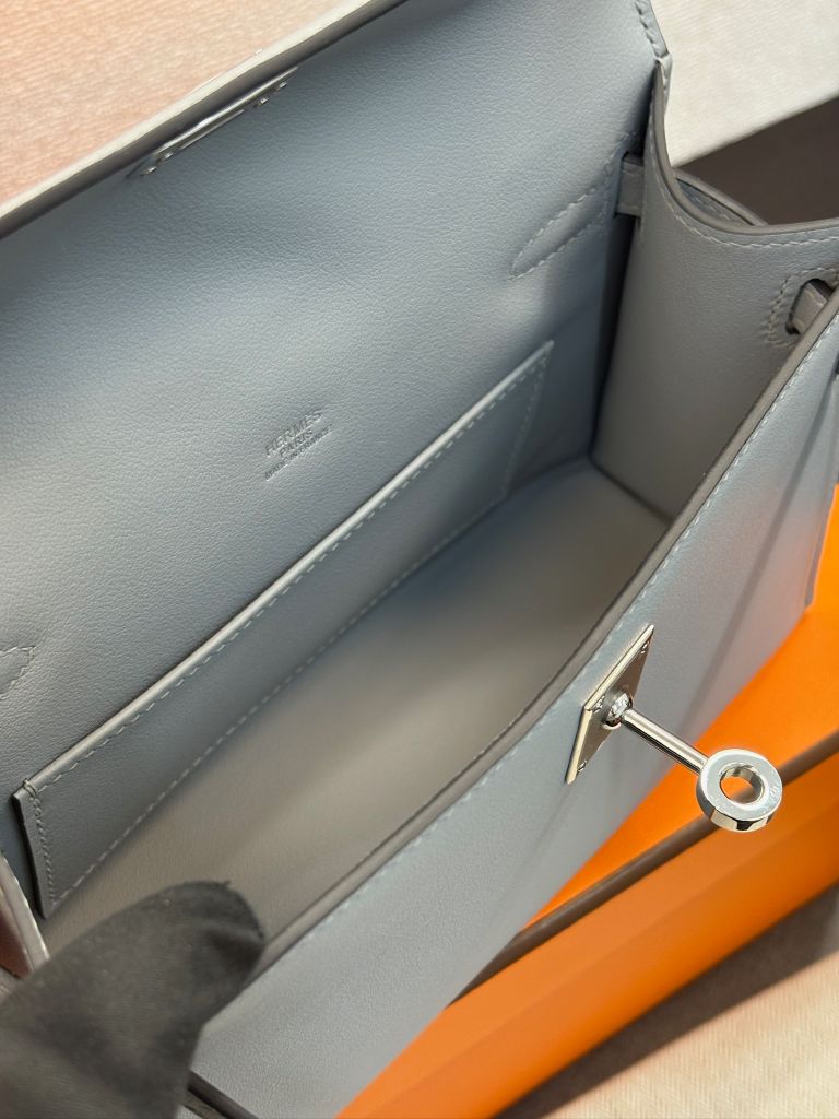 Chiếc Kelly mini 22 màu xám gỗ mang lại cảm giác nhẹ nhàng, tinh tế nhưng vẫn giữ đúng thần thái quyền lực đặc trưng của H*, rất hợp cho khách thích phong cách tối giản sang trọng.