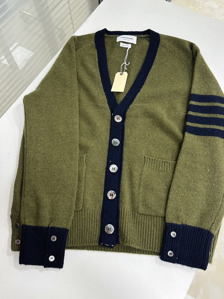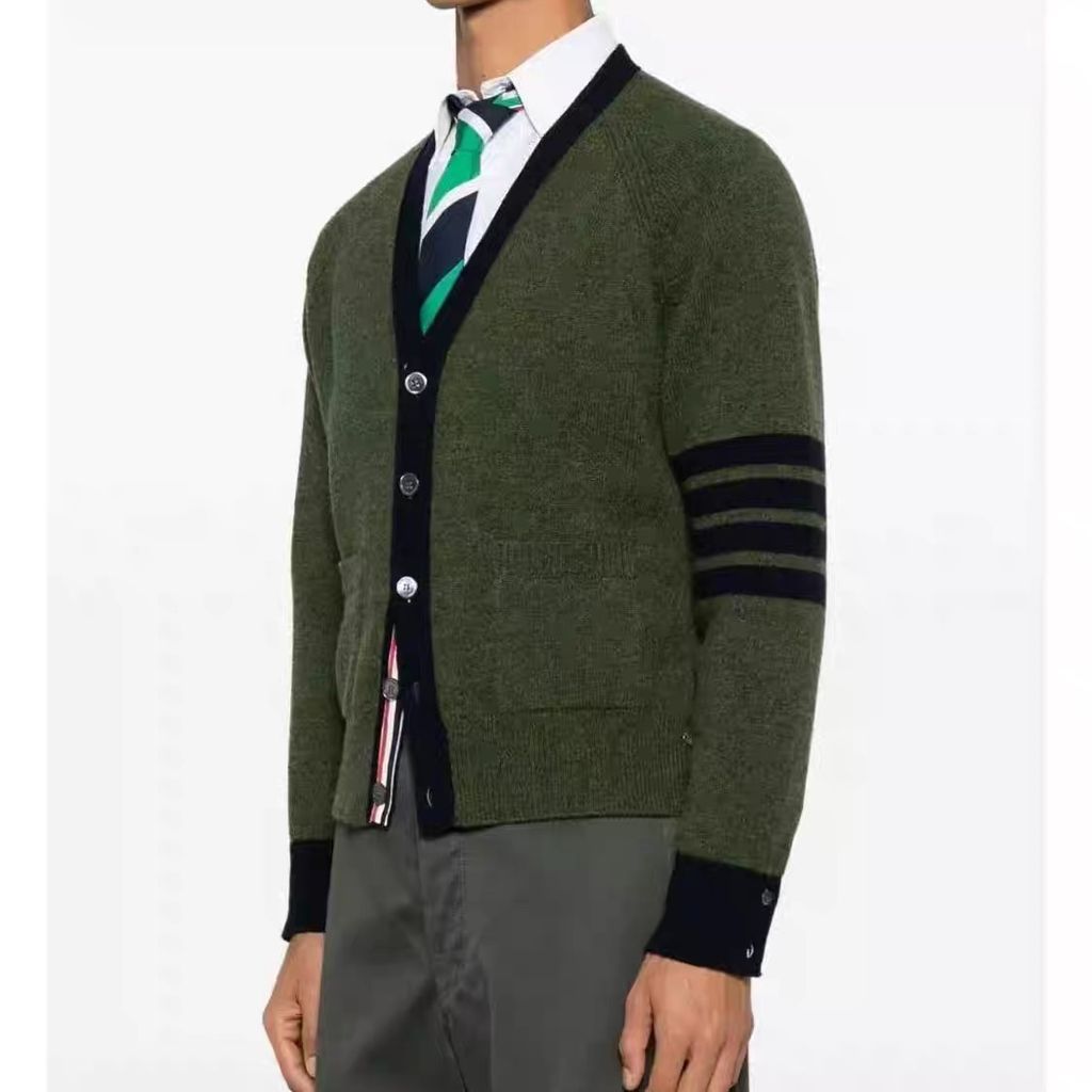 ÁO CARDIGAN NAM TB DÁNG V-NECK PHỐI VIỀN TƯƠNG PHẢN – 4 SỌC TAY ÁO NỔI BẬT 2050k (HÀNG ORDER QUỐC TẾ)