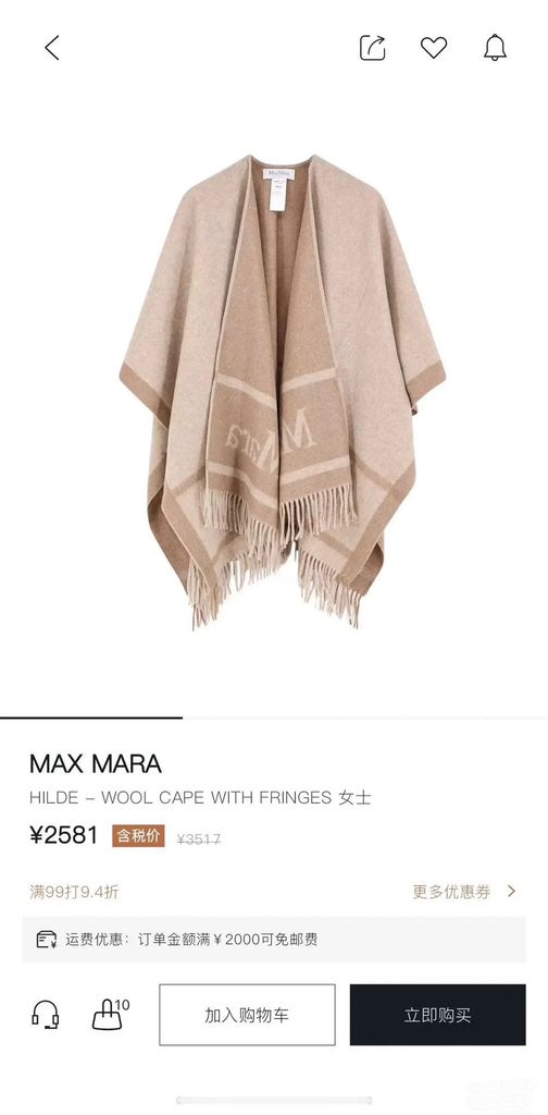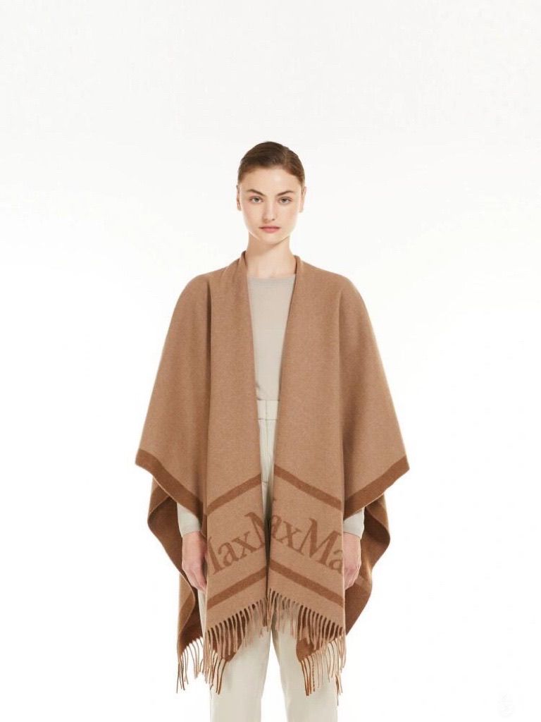 ÁO CHOÀNG CAPE UNISEX MAXM* LEN LÔNG CỪU MỀM, LOGO DỆT – TONE CAMEL BEIGE 1750k (HÀNG ORDER QUỐC TẾ)