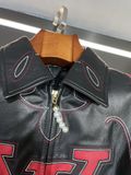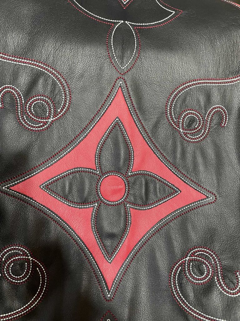 Chiếc áo khoác da của Lujia này được làm cẩn thận bằng da cừu nhập khẩu từ Úc và có chất lượng tuyệt vời. Quy trình ghép nối độc đáo kết hợp khéo léo da đen, đỏ và trắng để ghép LOGO LV và các thành phần thương hiệu trên khắp thân máy, thể hiện tác động thị giác mạnh mẽ và vẻ đẹp nghệ thuật. Mọi mối nối đều được xử lý cẩn thận, các đường nét mượt mà và tự nhiên, thể hiện sự theo đuổi tay nghề thủ công cao nhất của thương hiệu.