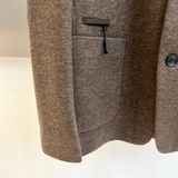 • Dáng cổ bẻ chuẩn blazer Ý, đường ve mềm nhưng đứng phom, tạo cảm giác vai – ngực gọn và cân đối