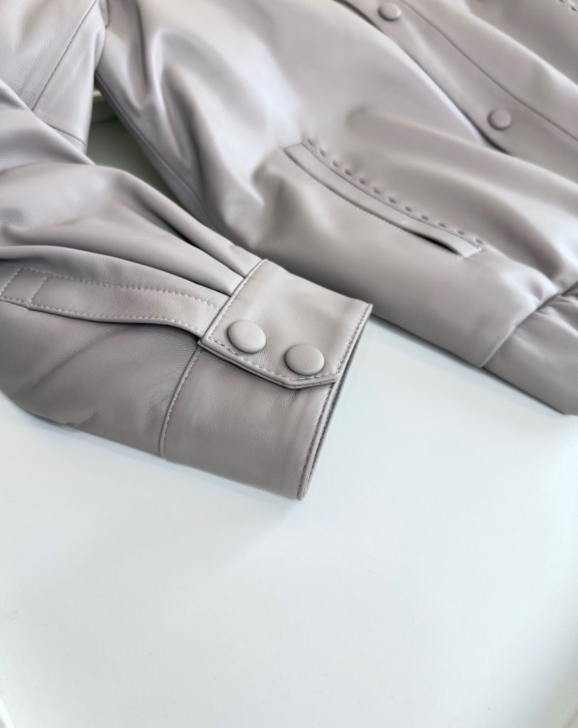 Một chiếc áo khoác da đúng chuẩn “mặc lên là có khí chất” – phom đứng đẹp, cảm giác sang gọn và ấm áp rõ rệt nhưng vẫn nhẹ, dễ di chuyển trong lịch trình dài.