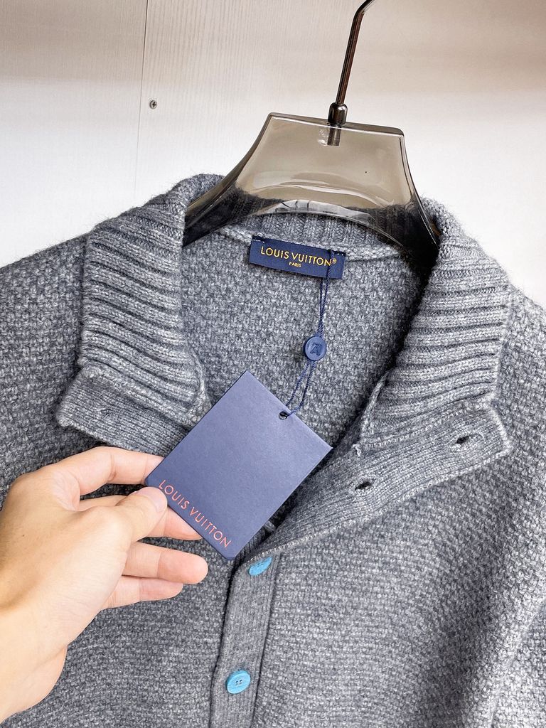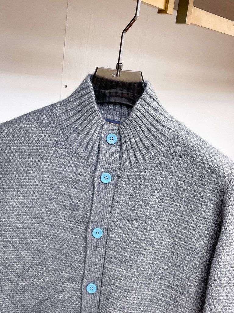 ÁO KHOÁC LEN CARDIGAN NAM L V CỔ ĐỨNG DÁNG GỌN – NÚT HOA BIỂU TƯỢNG, DỆT NỔI CAO CẤP 1950k (HÀNG ORDER QUỐC TẾ)