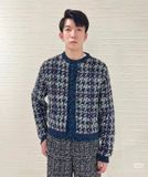 Tông navy trầm ấm cùng họa tiết check chéo dệt nổi sắc nét, tạo diện mạo lịch lãm và nổi bật cho mùa lạnh.