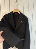 • Chi tiết tag/kim loại nhỏ trên ve áo mang hơi hướng menswear cao cấp, nhìn gần mới thấy độ “chất”.