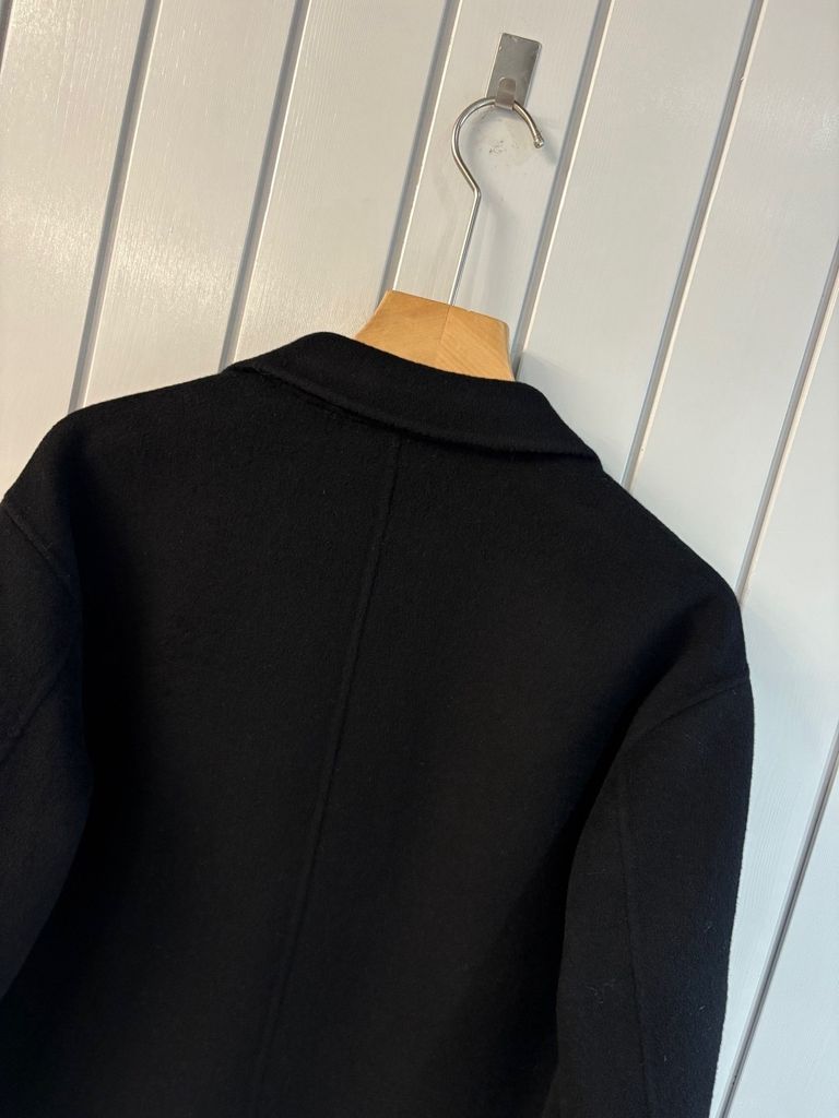 • Bề mặt dạ lông cừu 100%, có phối sợi cashmere mềm, dày dặn nhưng không nặng, giữ form tốt.
