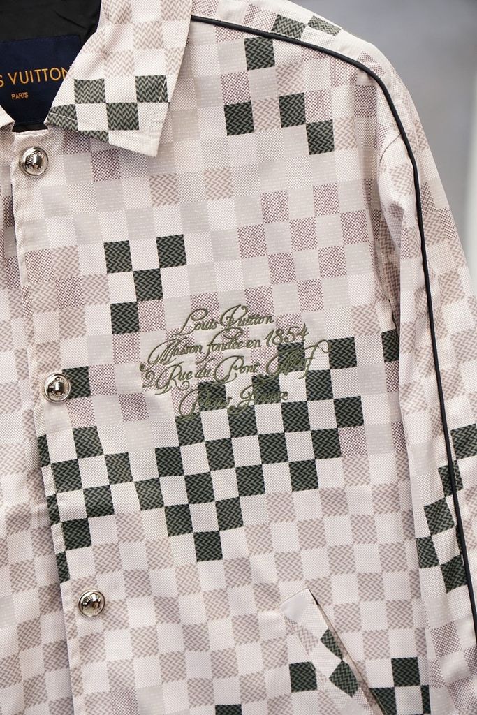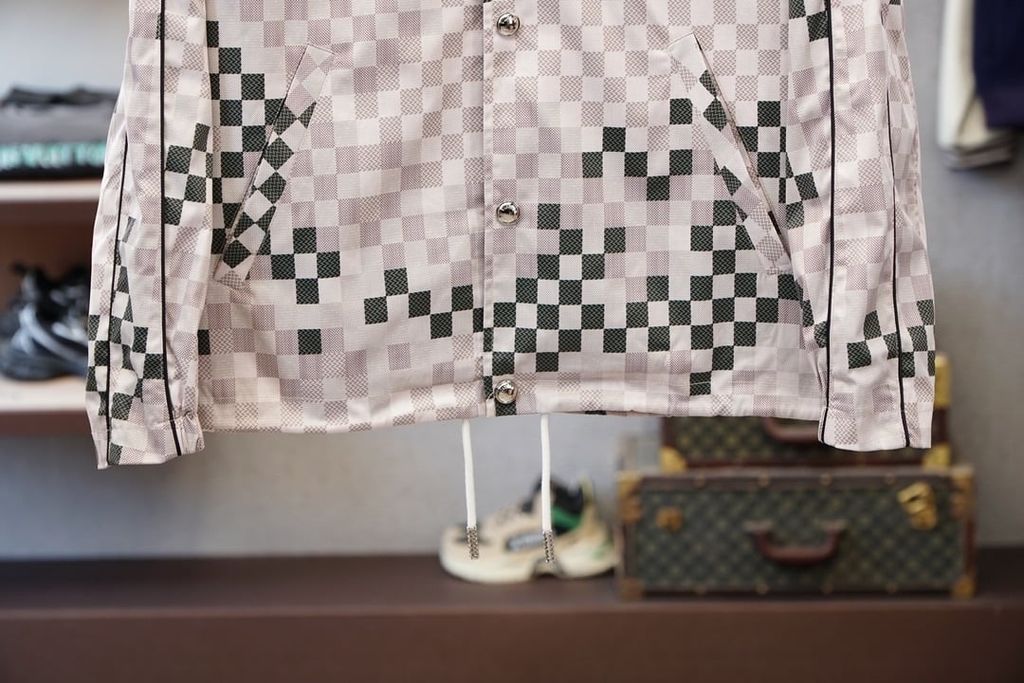 Một mẫu áo khoác nổi bật ở bề mặt Damier biến tấu theo hiệu ứng pixel, lên dáng rất riêng và cực kỳ bắt mắt.