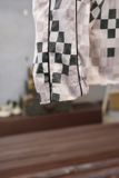 • Họa tiết ô vuông phủ toàn thân phối mảng pixel tạo chiều sâu thị giác, giúp tổng thể khác biệt nhưng vẫn giữ được nét sang và sạch form.