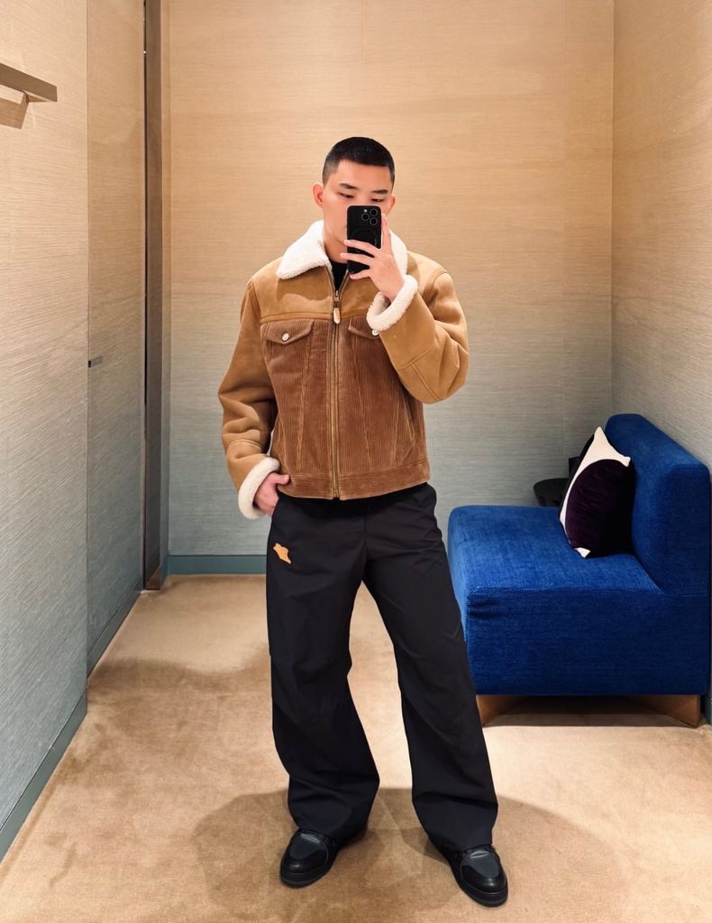 Một chiếc áo khoác “đúng gu” mùa lạnh: phom gọn nam tính, bề mặt phối chất liệu có chiều sâu, lên đồ là thấy ngay thần thái.