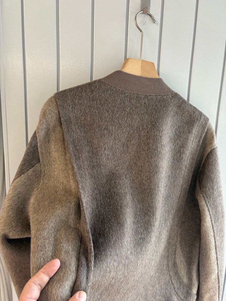 • Dạ len pha 20% wool kết hợp sợi cao cấp, bề mặt mềm mịn nhưng vẫn có độ đứng form rõ ràng.