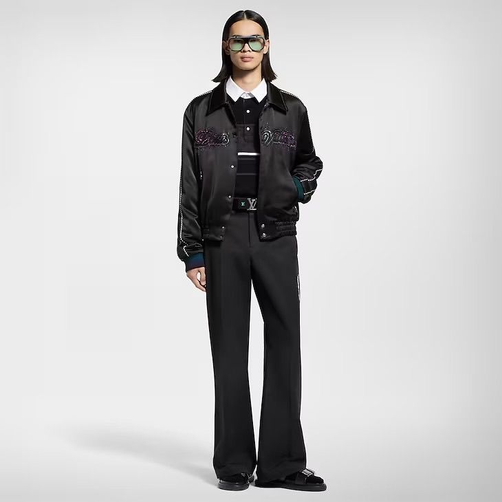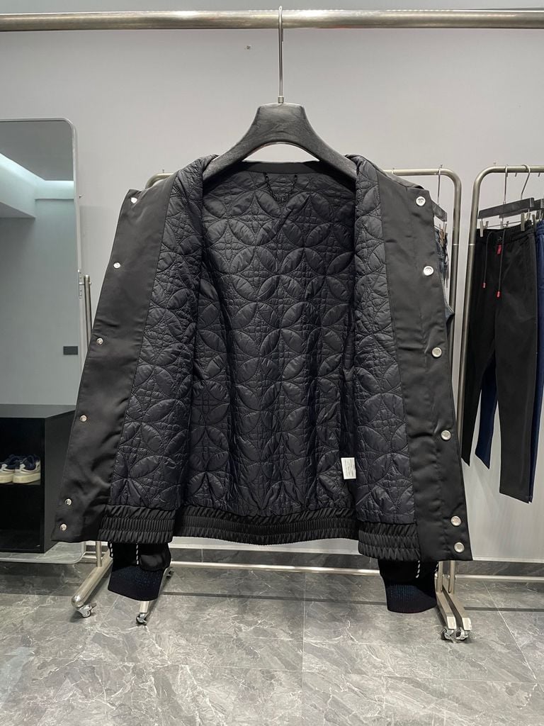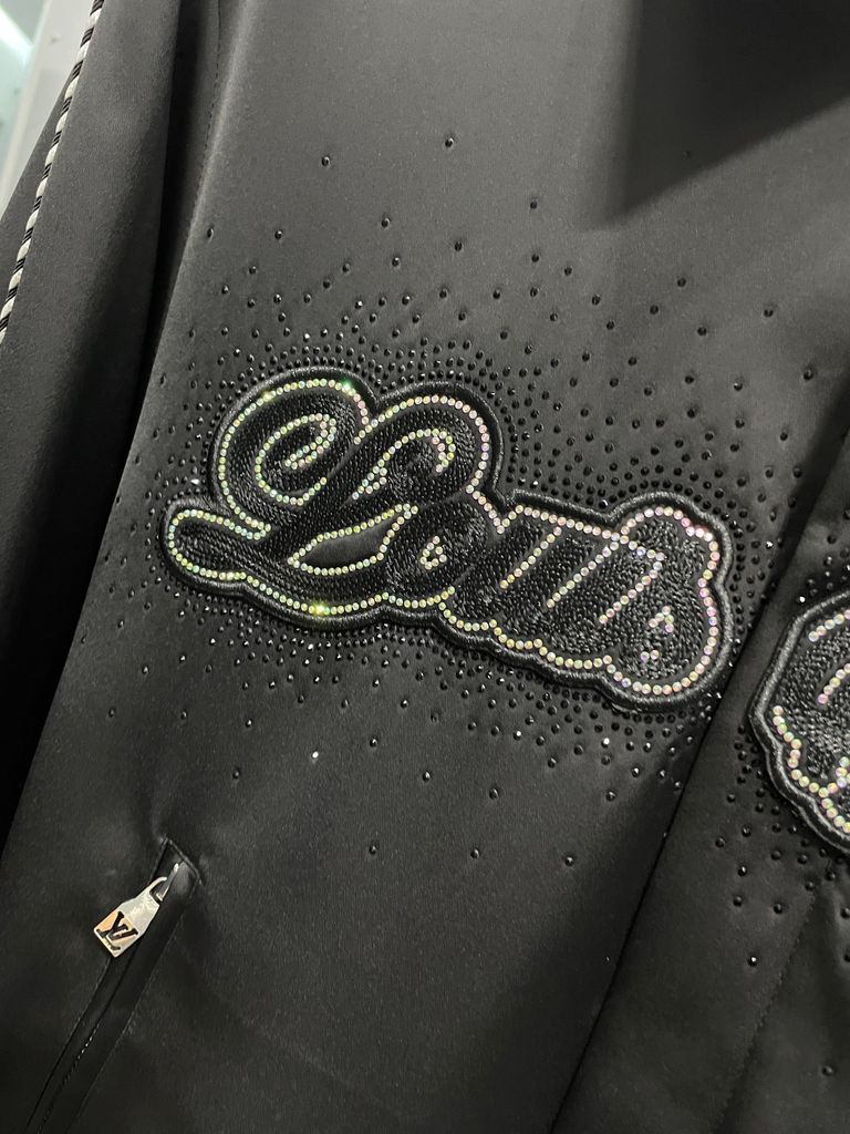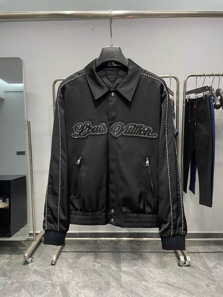 ÁO KHOÁC NAM LV* SATIN ĐEN THÊU CHỮ KẾT ĐÁ – VIỀN NỔI TINH XẢO 2300k