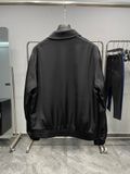 • Diện mạo bóng bẩy, cá tính sang trọng. Phom bomber cổ bẻ hiện đại trên nền satin ánh nhẹ, bắt sáng nổi bật khi di chuyển.