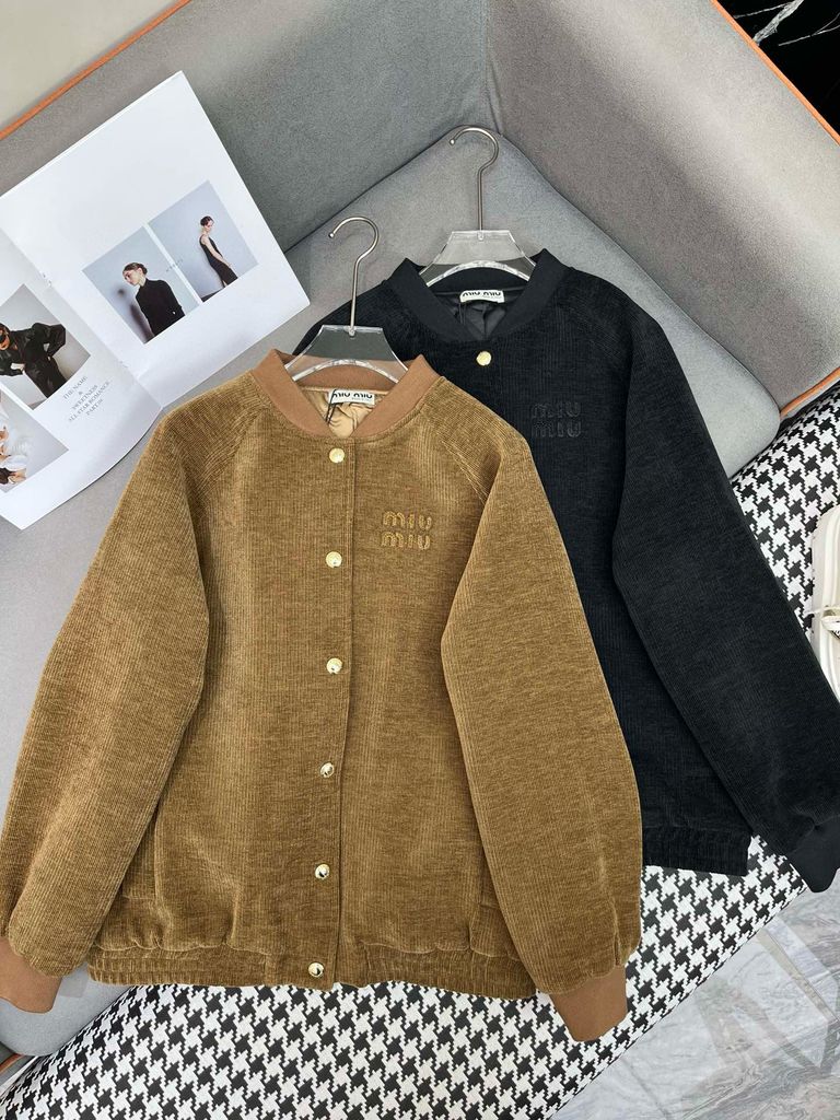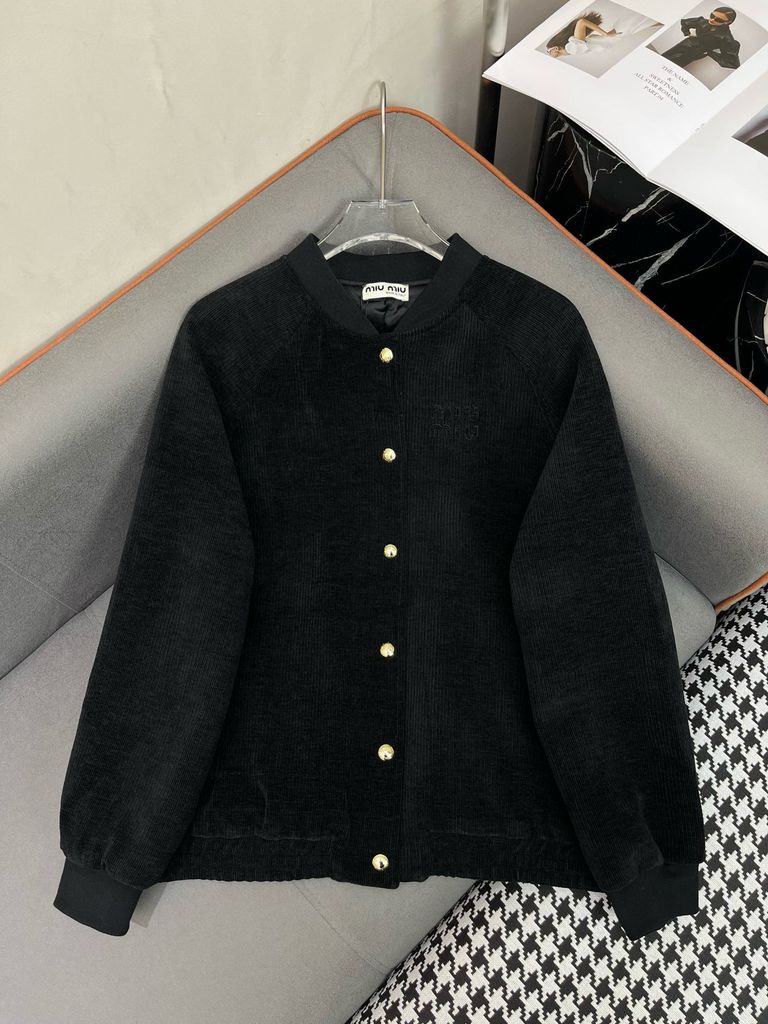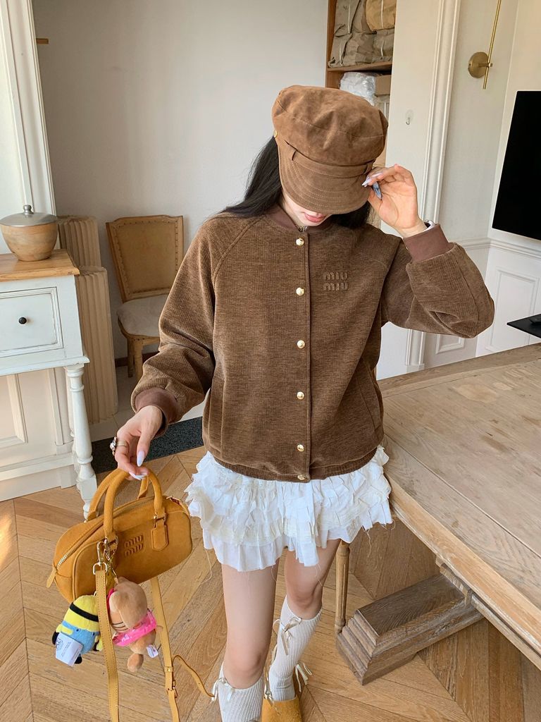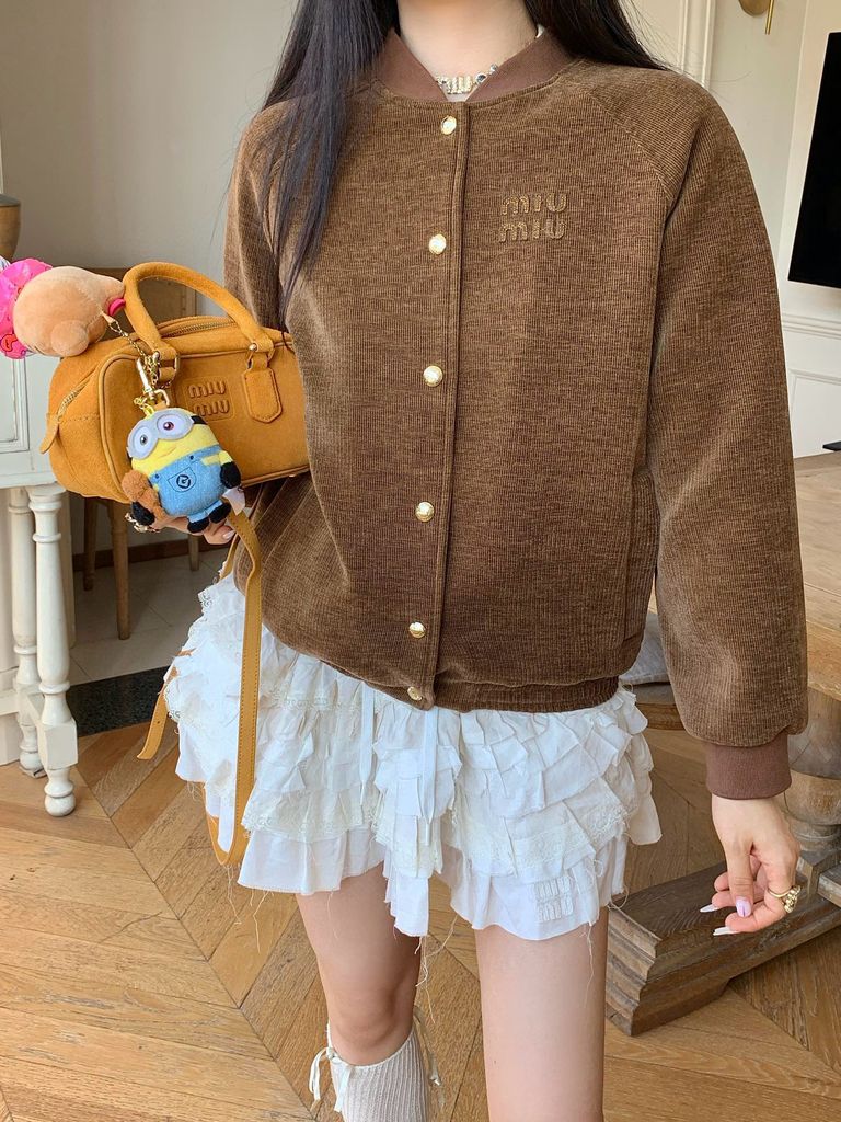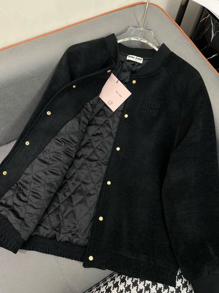 Áo khoác nhẹ miu* miu* cho nữ đồng phục bóng chày mới/vải bông nhung/trang trí hoa thêu chữ/hai màu và ba mã SML