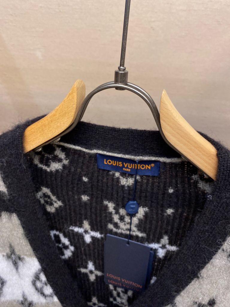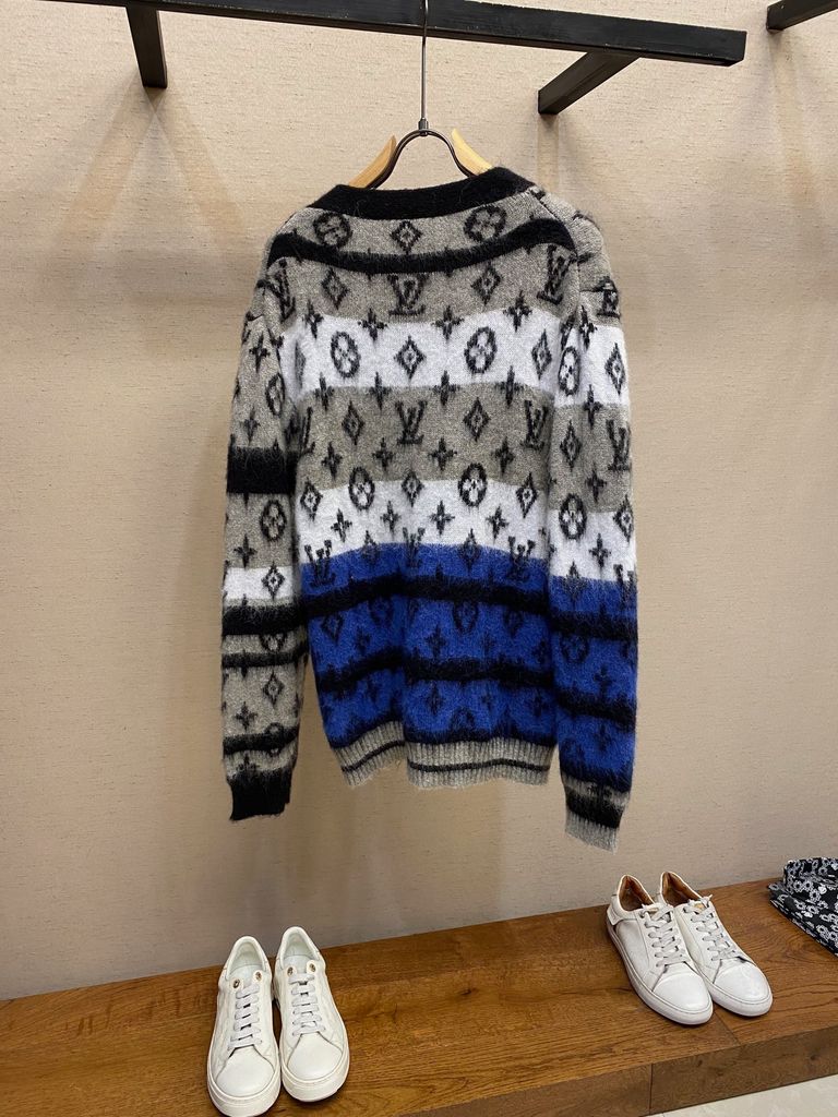 ÁO LEN CARDIGAN NAM LV* MOHAIR JACQUARD MONOGRAM – PHỐI ĐEN/ TRẮNG/ XANH 1850k (HÀNG ORDER QUỐC TẾ)