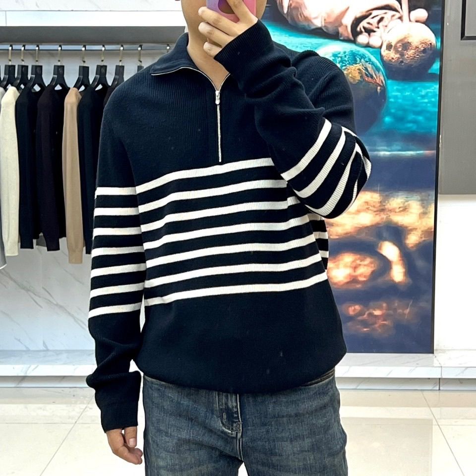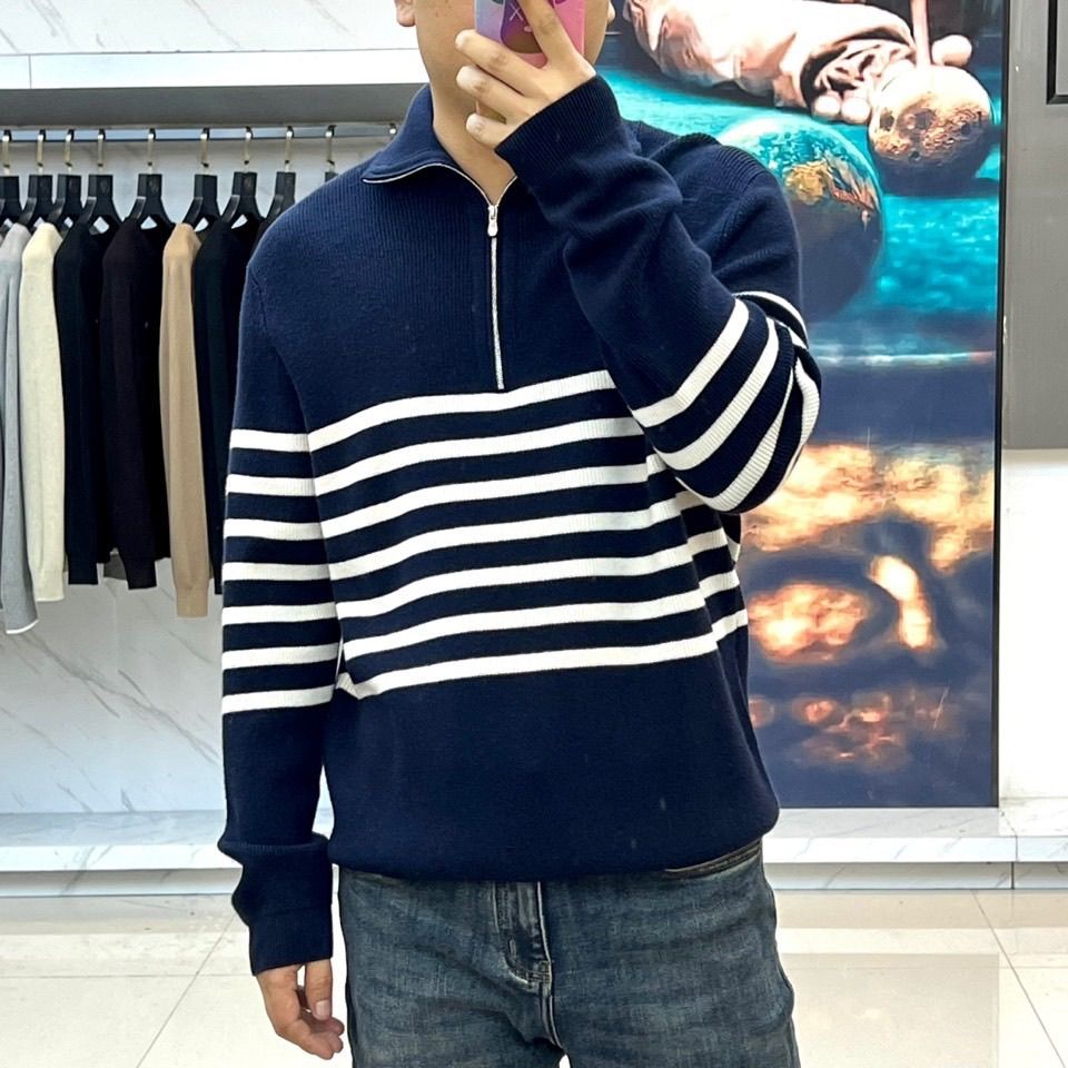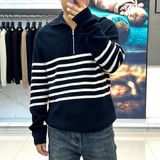 ÁO LEN NAM BC CỔ CAO KHOÁ NỬA – HOẠ TIẾT KẺ NGANG TỐI GIẢN, FORM RỘNG THANH LỊCH 1500k (HÀNG ORDER QUỐC TẾ)
