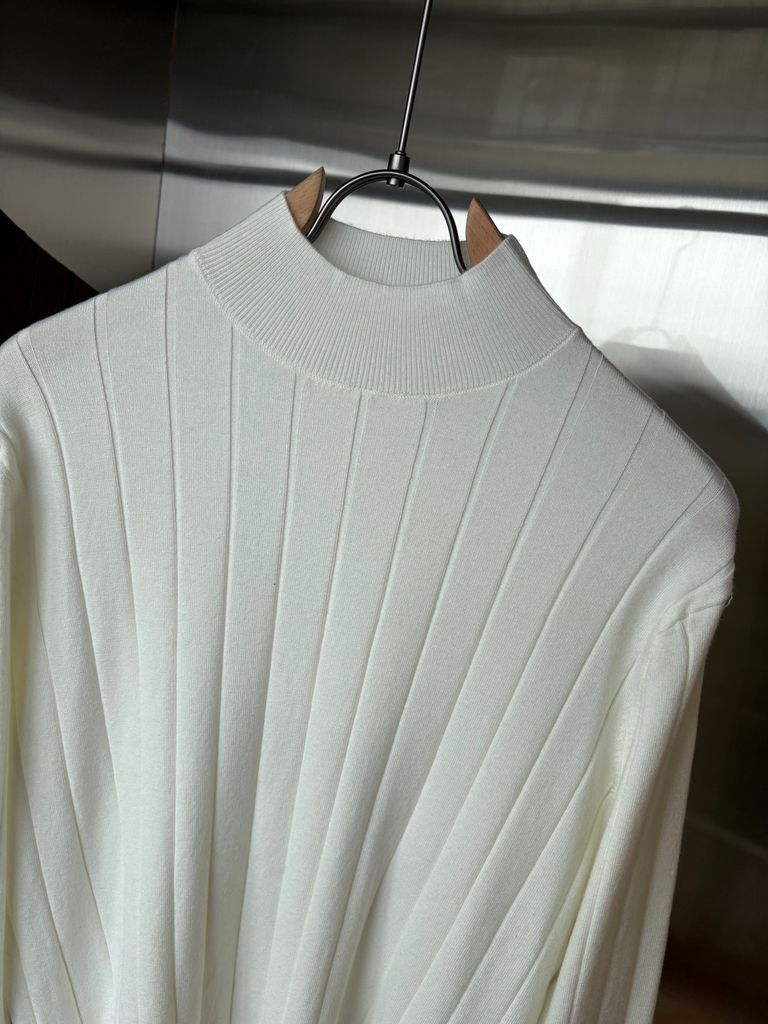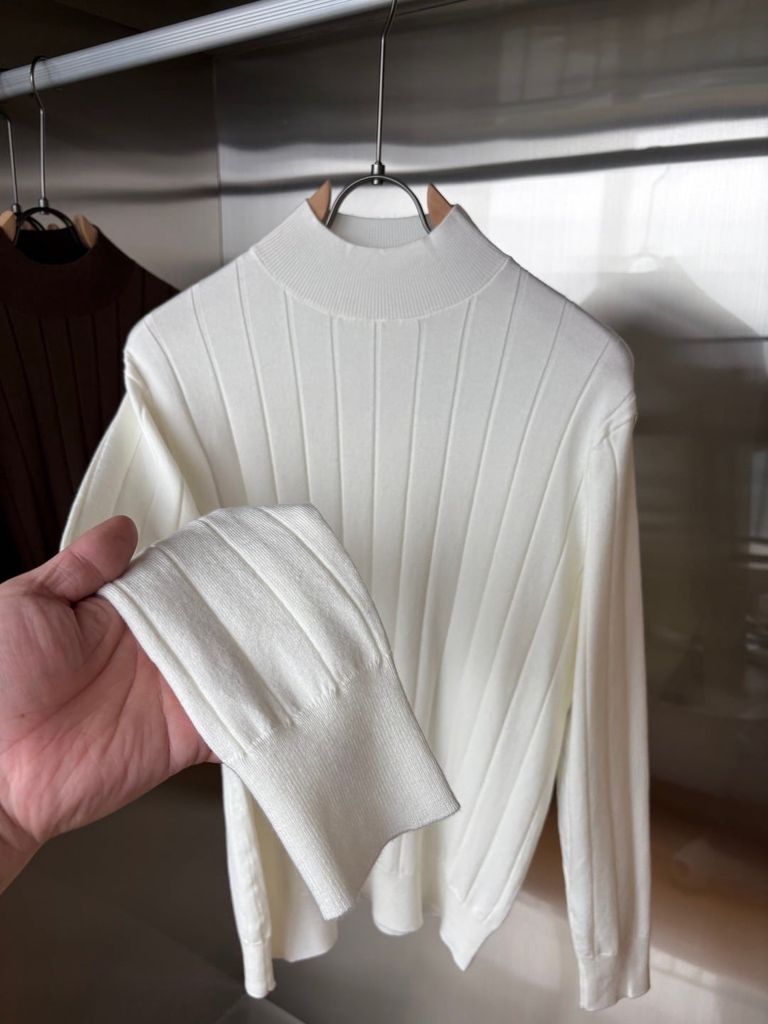 • Thiết kế & dấu ấn: cổ mock neck tối giản, gân dọc tôn dáng; phom gọn gàng, tay và lai bo tinh tế cho tổng thể sạch sẽ, sang trọng.