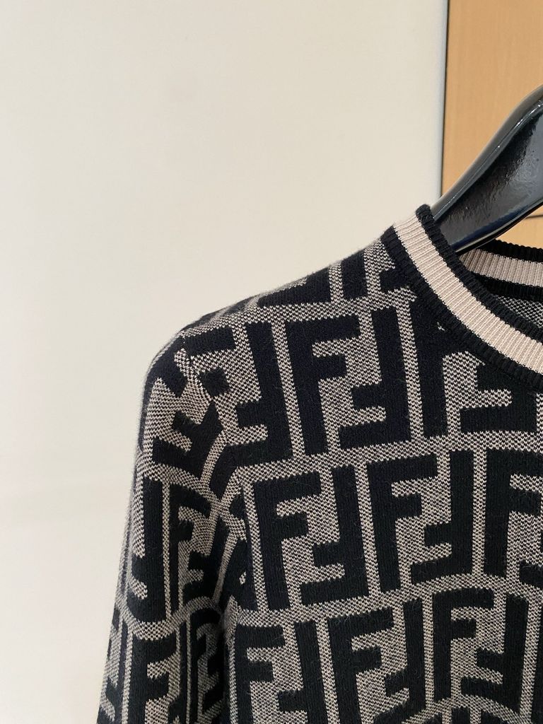 • Mẫu áo len jacquard phủ logo kép nổi bật, tạo ấn tượng hiện đại và sang trọng ngay từ cái nhìn đầu tiên.