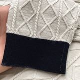• Thân trước là mảng len dệt tổ ong và cable đan xen, tạo hiệu ứng nổi 3D rõ nét, rất “editorial” kiểu châu Âu.