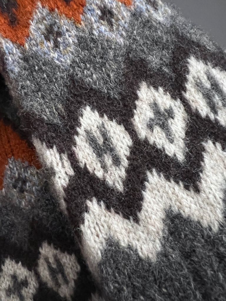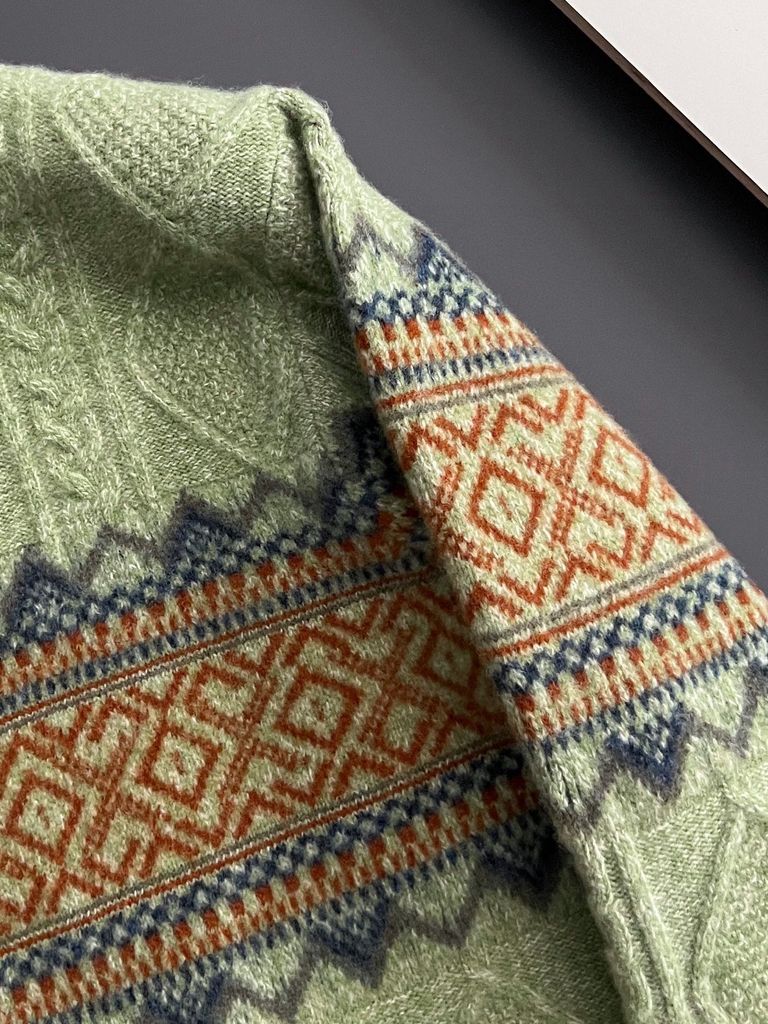 • Dải họa tiết jacquard phong cách Giáng Sinh chạy ngang thân áo, cân bằng giữa cổ điển và hiện đại.