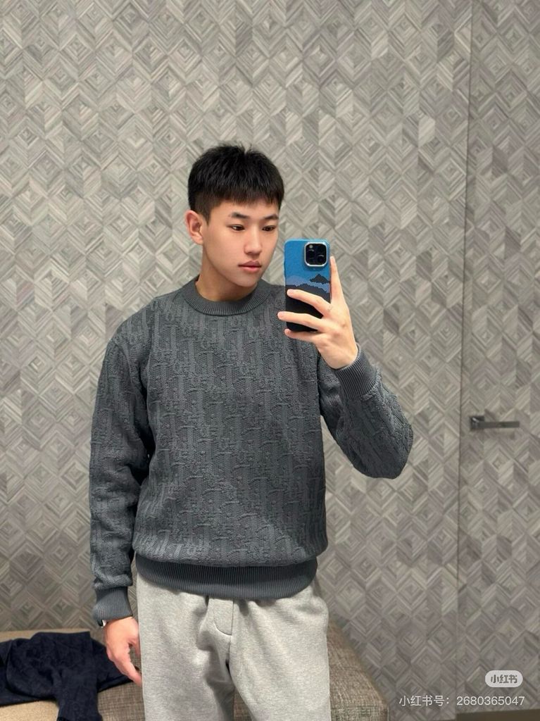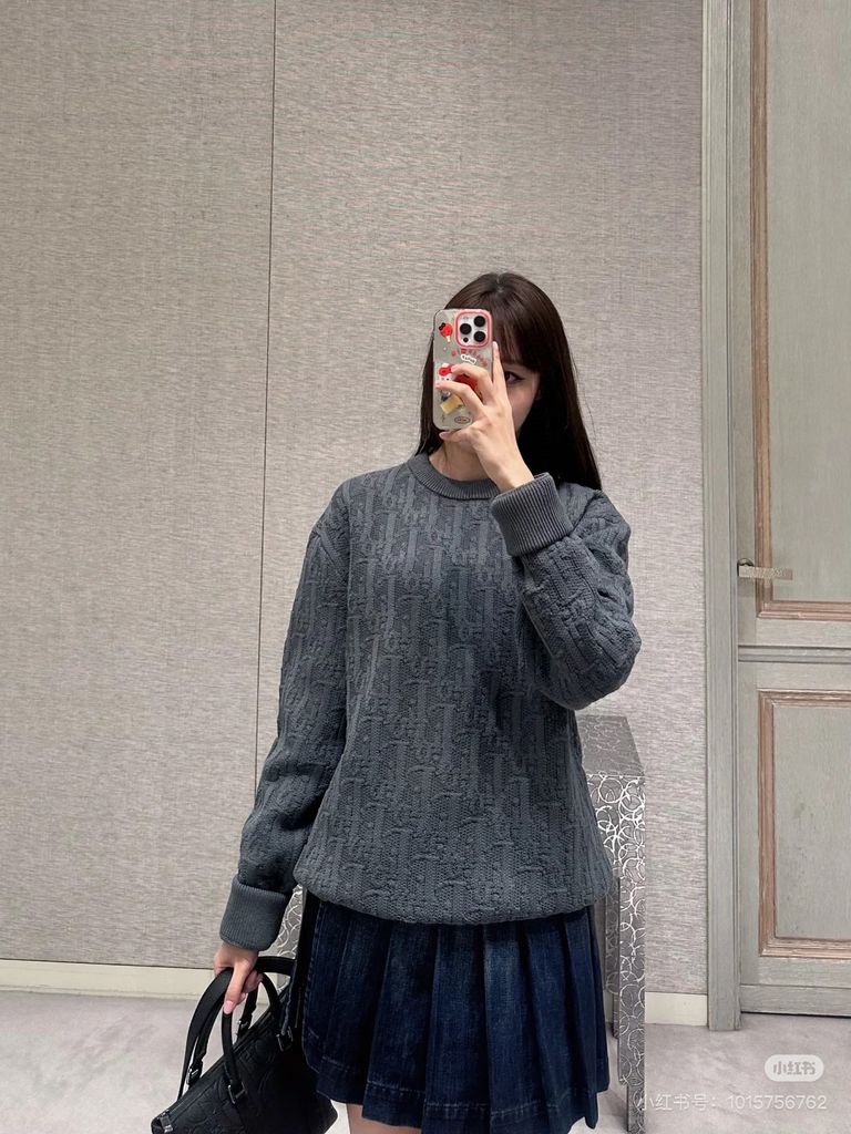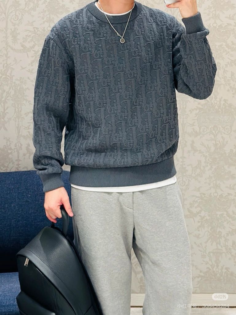 Áo len nam nữ DIOR* dệt nổi hoạ tiết oblique màu xám chì đẹp VIP 1:1 1850k