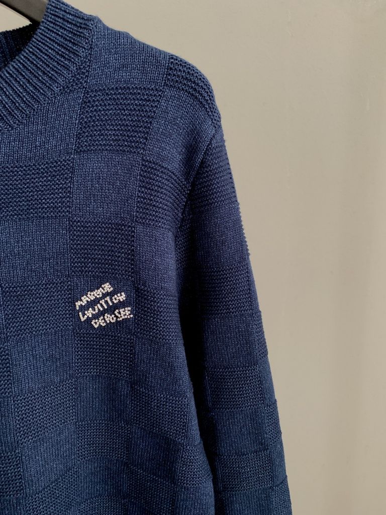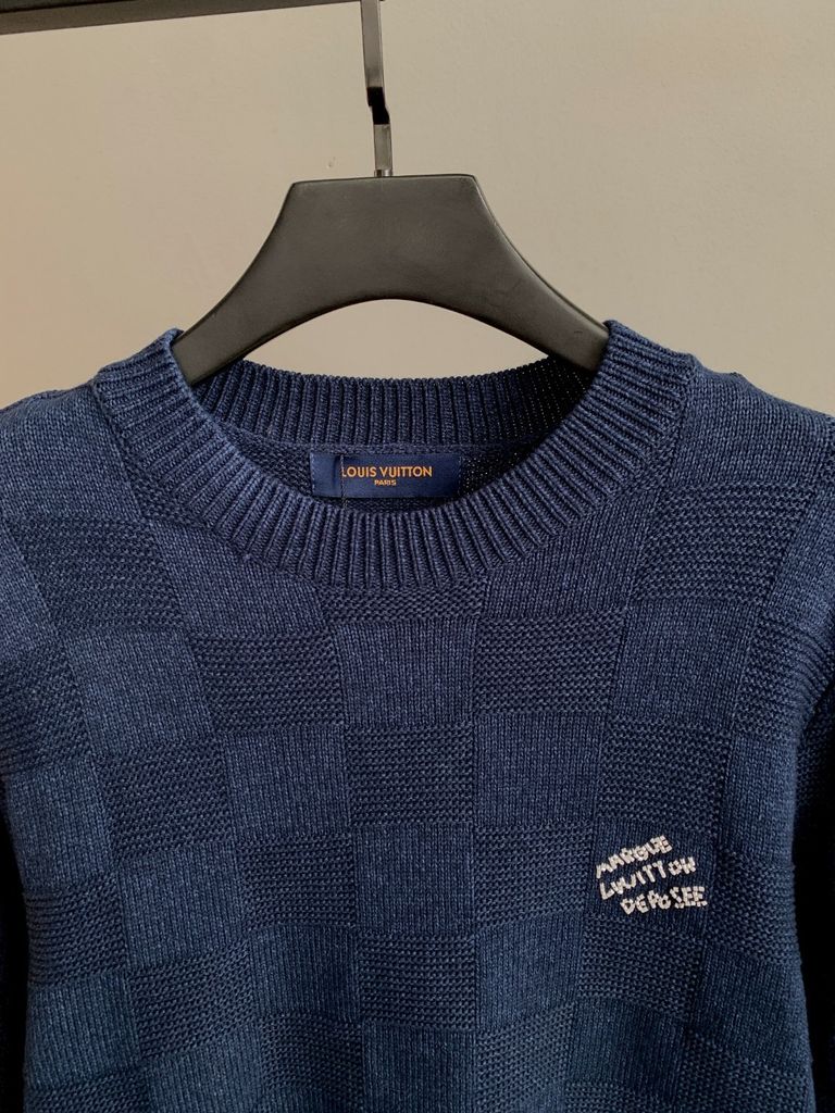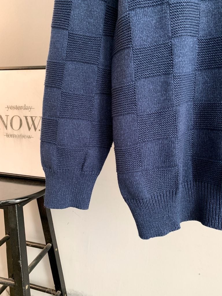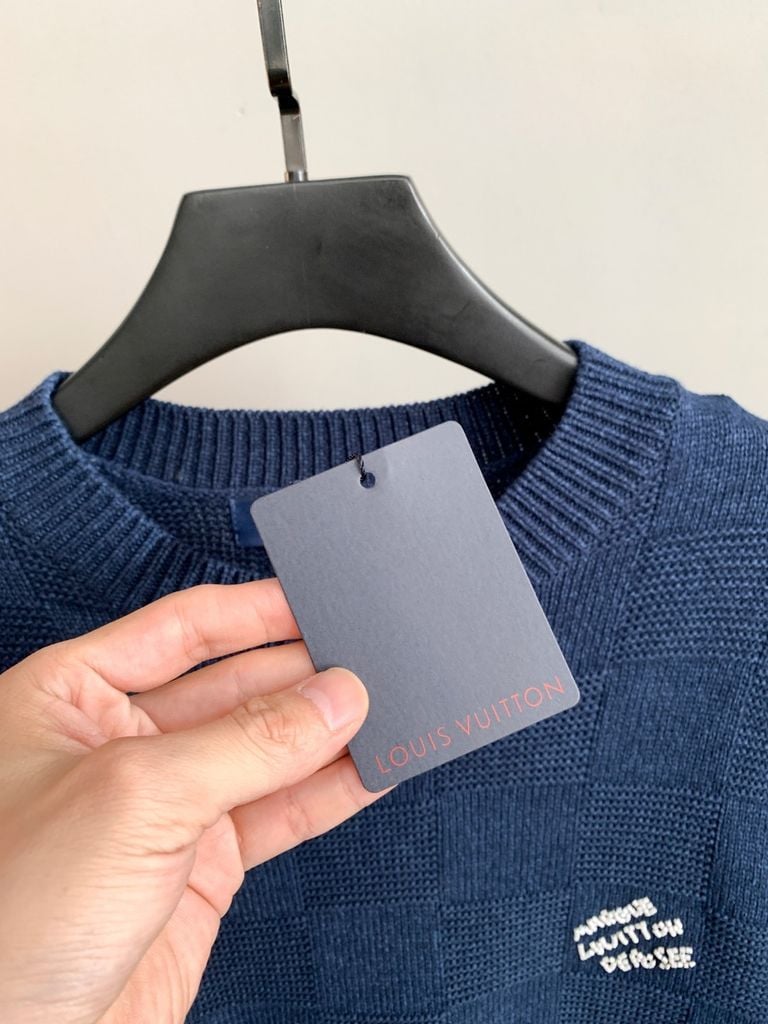 ÁO LEN UNISEX LV* CARO DỆT NỔI XANH NAVY CAO CẤP 1200k (HÀNG ORDER QUỐC TẾ)