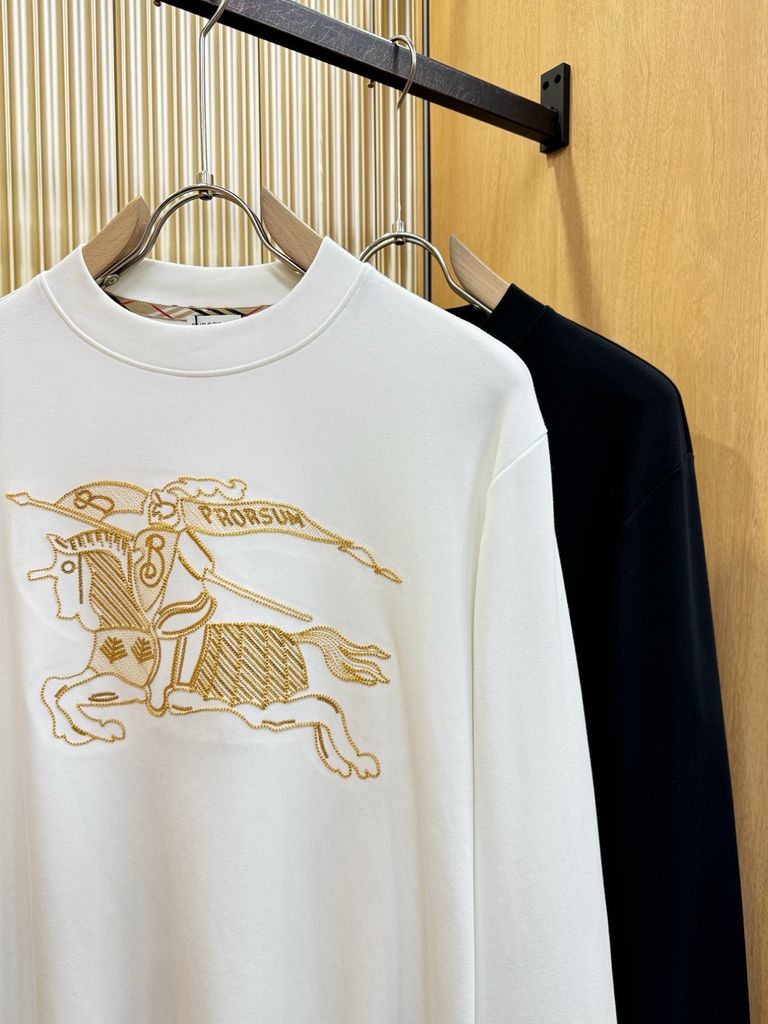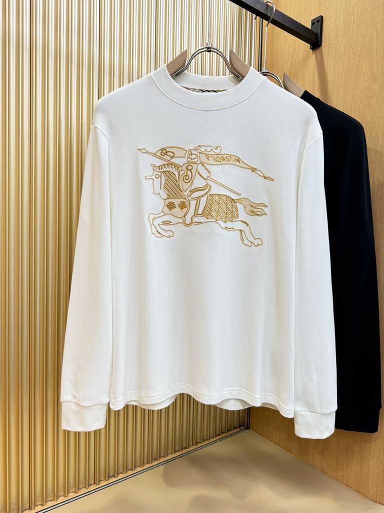 • Thiết kế tay dài, nền đen – trắng tương phản, nổi bật hình kỵ sĩ BURB* thêu chỉ vàng sắc nét, nhìn là nhận ra “chủ nhân” yêu đồ hiệu.