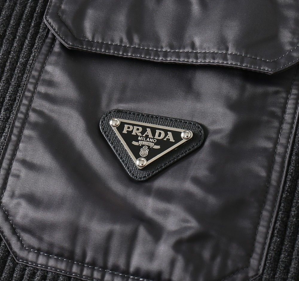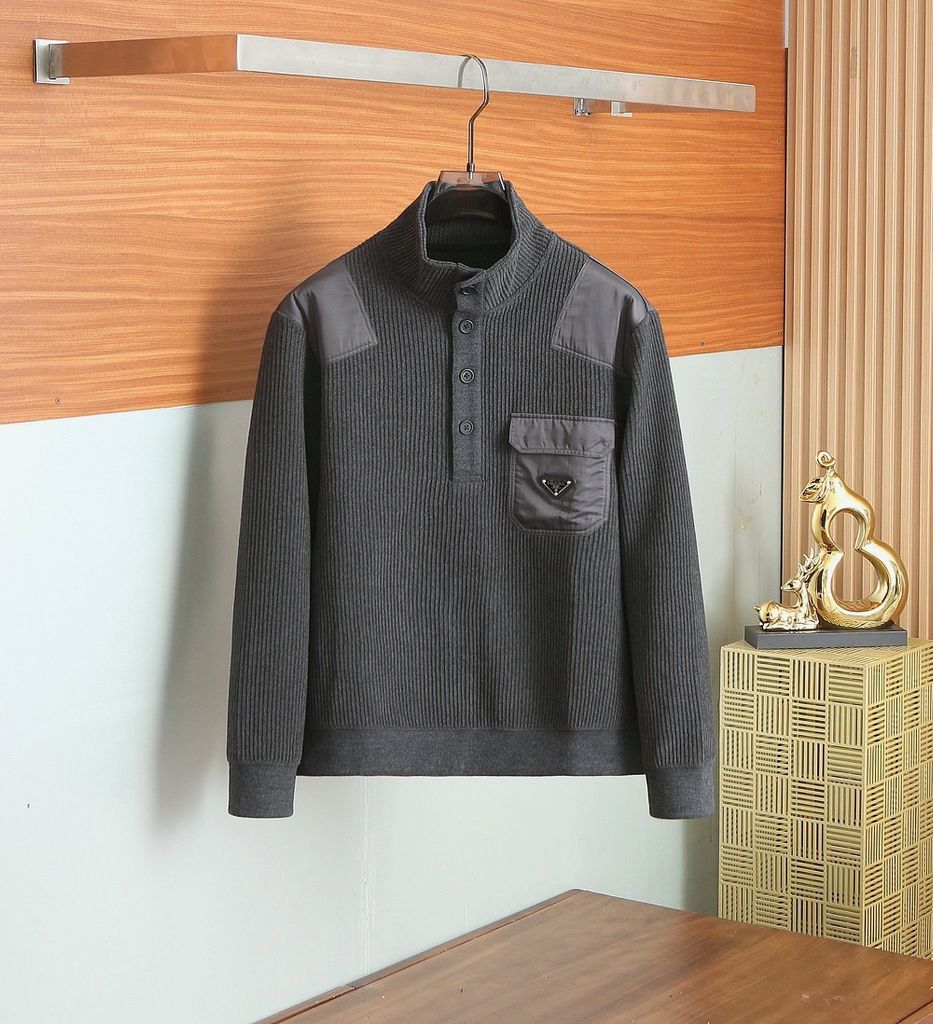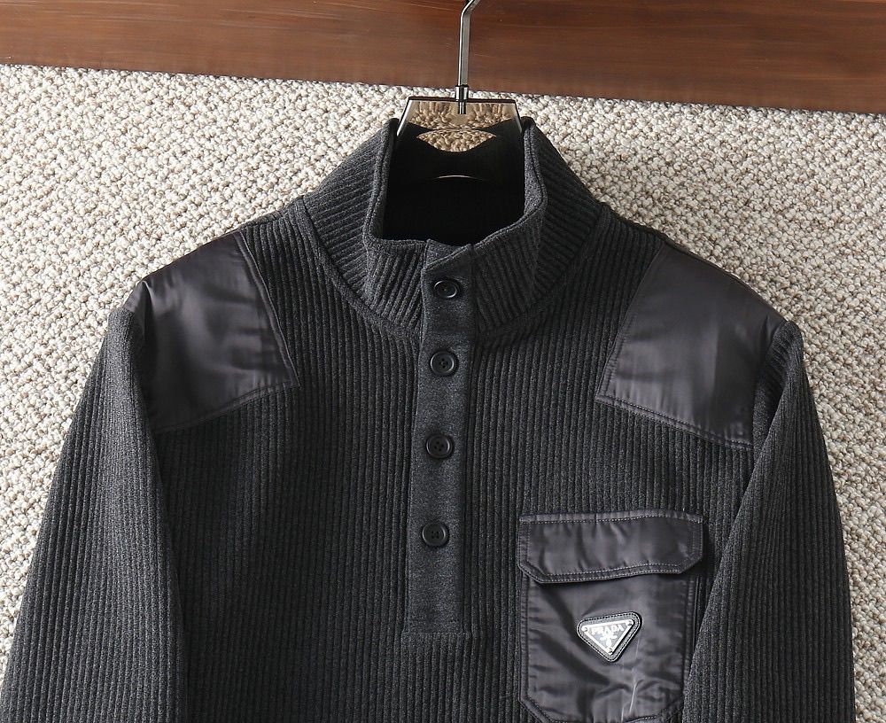 ÁO NAM LEN CỔ CAO PRAD* PHỐI NYLON VAI – LOGO TAM GIÁC, FORM GỌN LỊCH LÃM 1700k (HÀNG ORDER QUỐC TẾ)