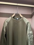 • Đường may gọn, chỉn chu; phần tay phối chất liệu tạo chiều sâu và khác biệt
