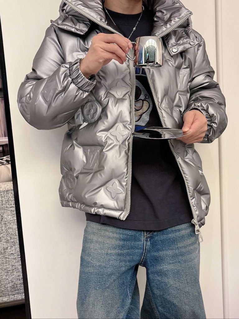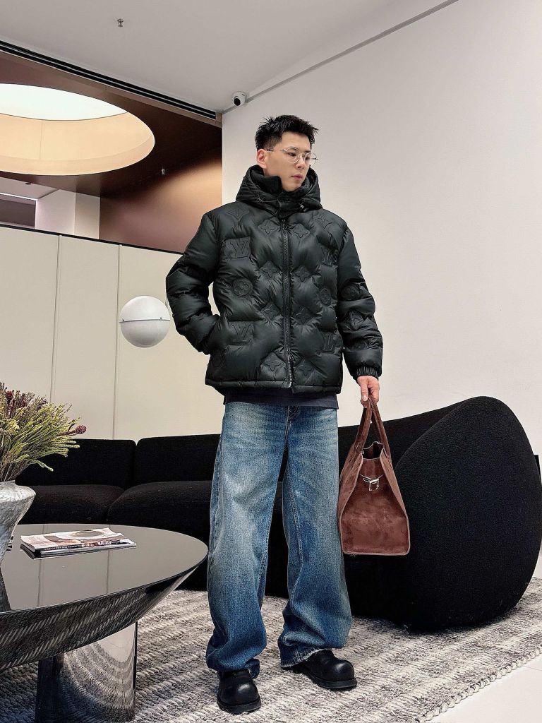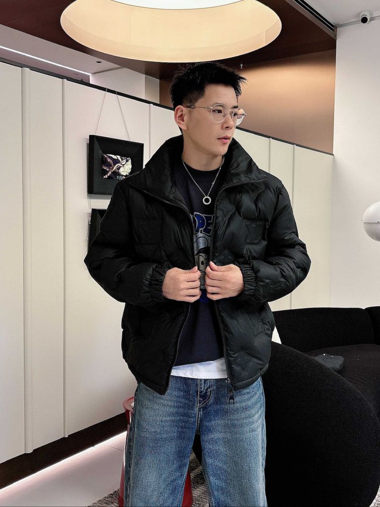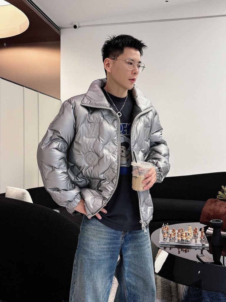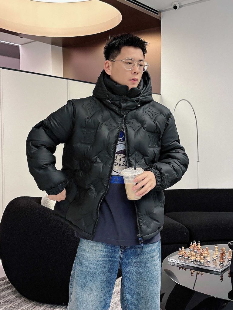 ÁO PHAO NAM L V PHIÊN BẢN RUNWAY DẬP NỔI HOẠ TIẾT – GHÉP DA CAO CẤP – CỔ ĐỨNG FORM CHUẨN 3750k (HÀNG ORDER QUỐC TẾ)