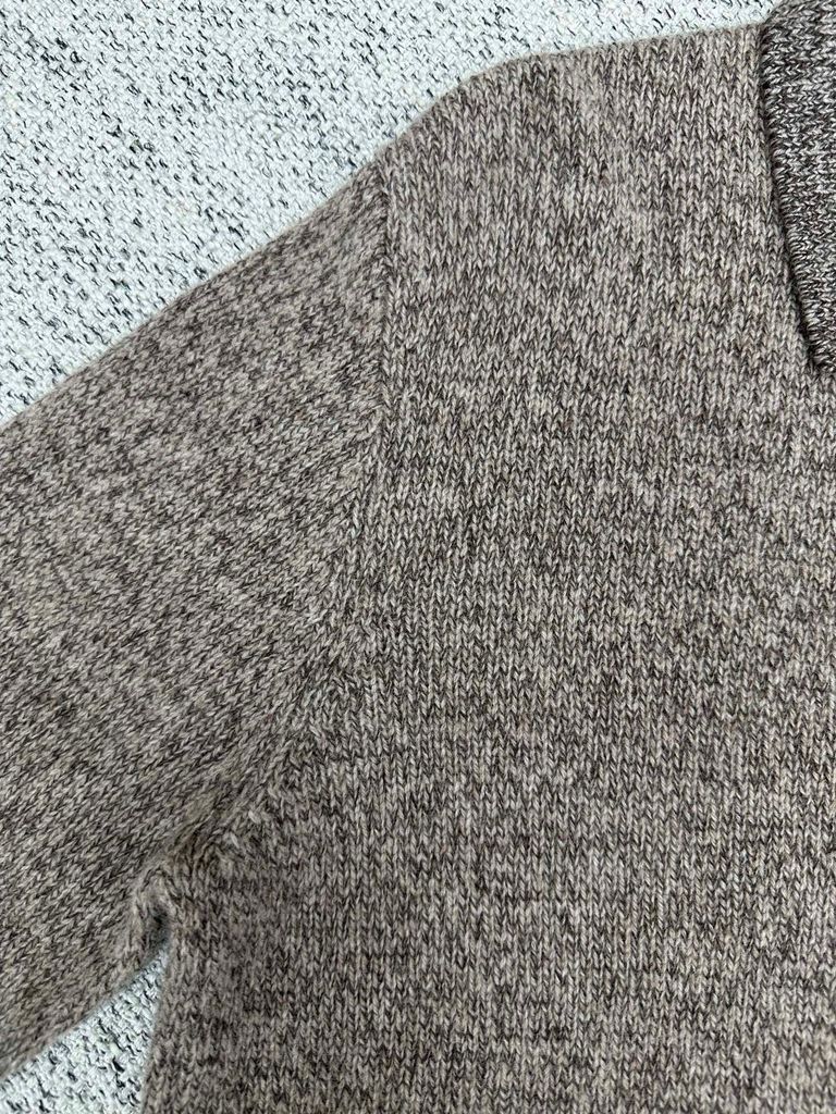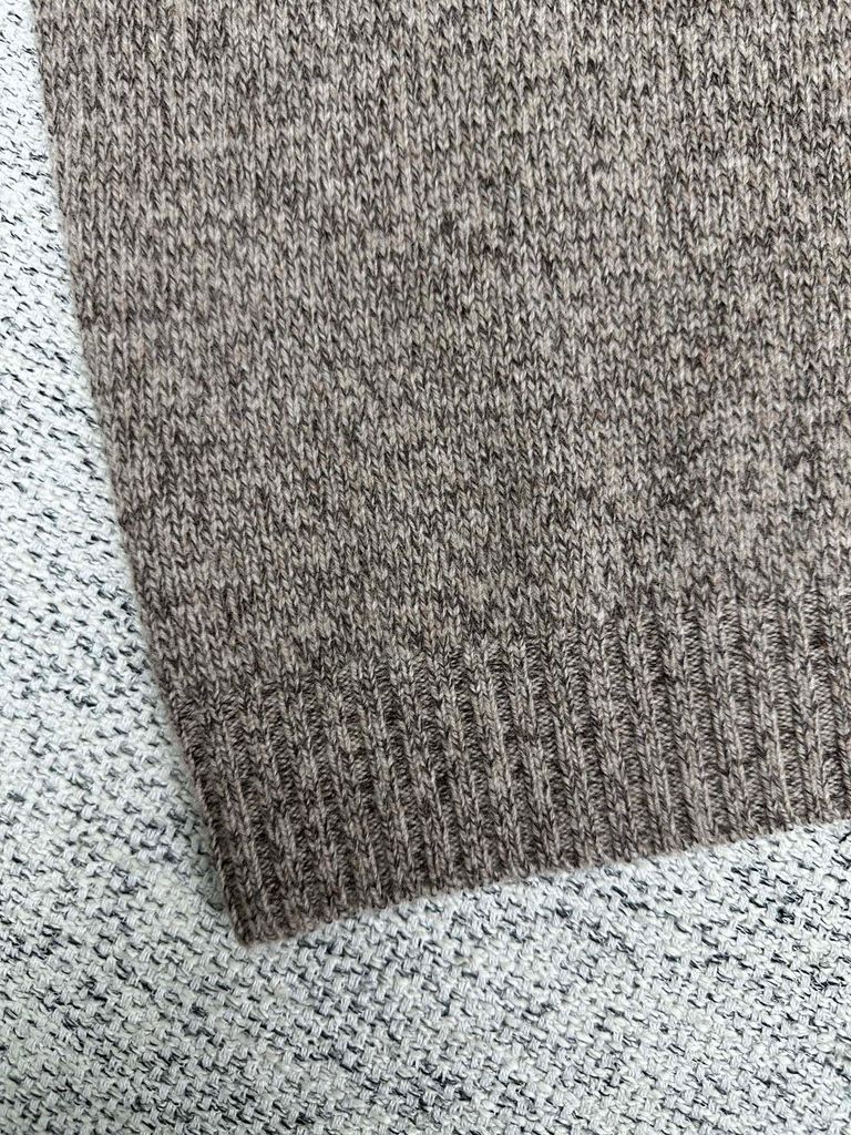 • Dệt kim pha sợi len mịn và cashmere, bề mặt êm tay, độ rủ đẹp, giữ ấm vừa phải