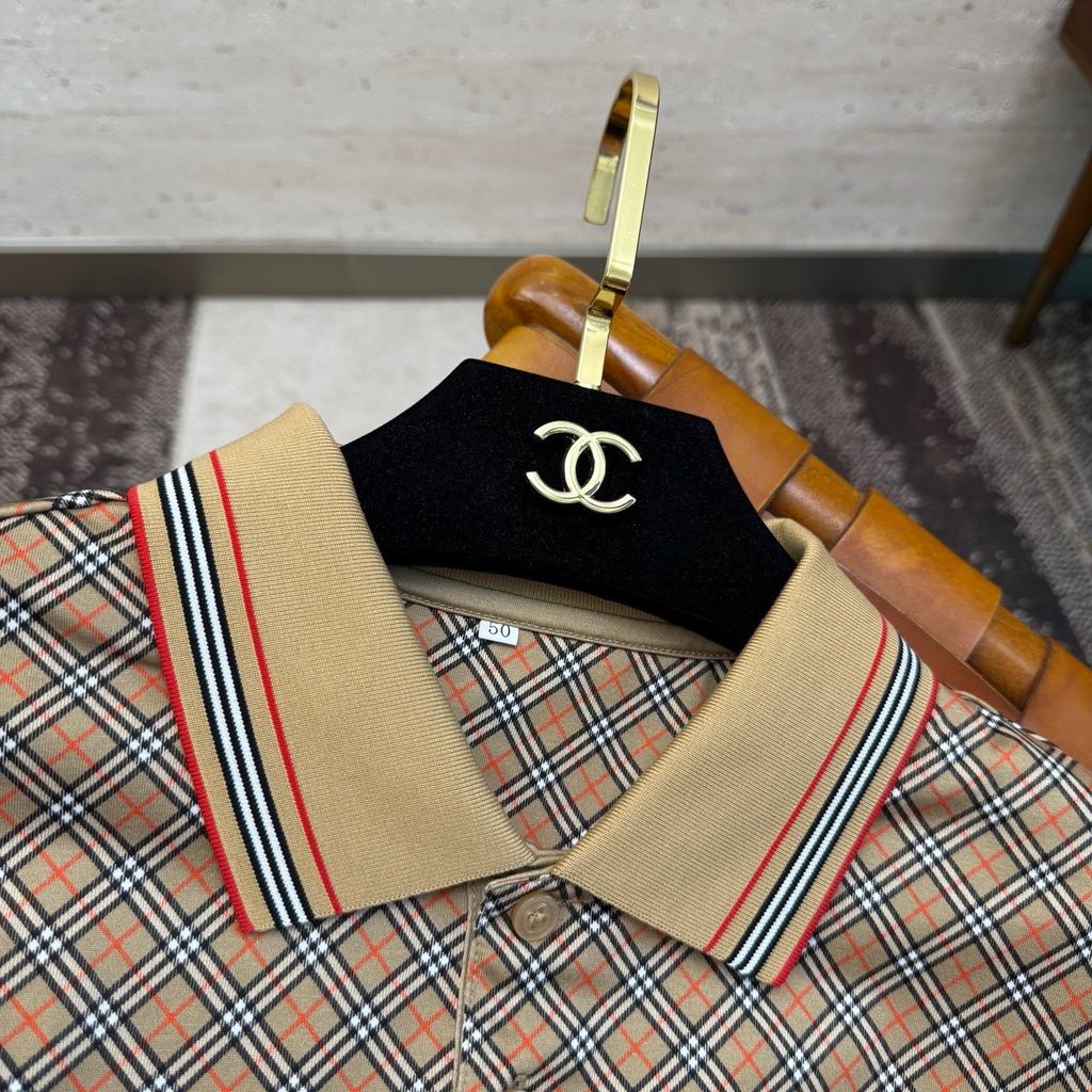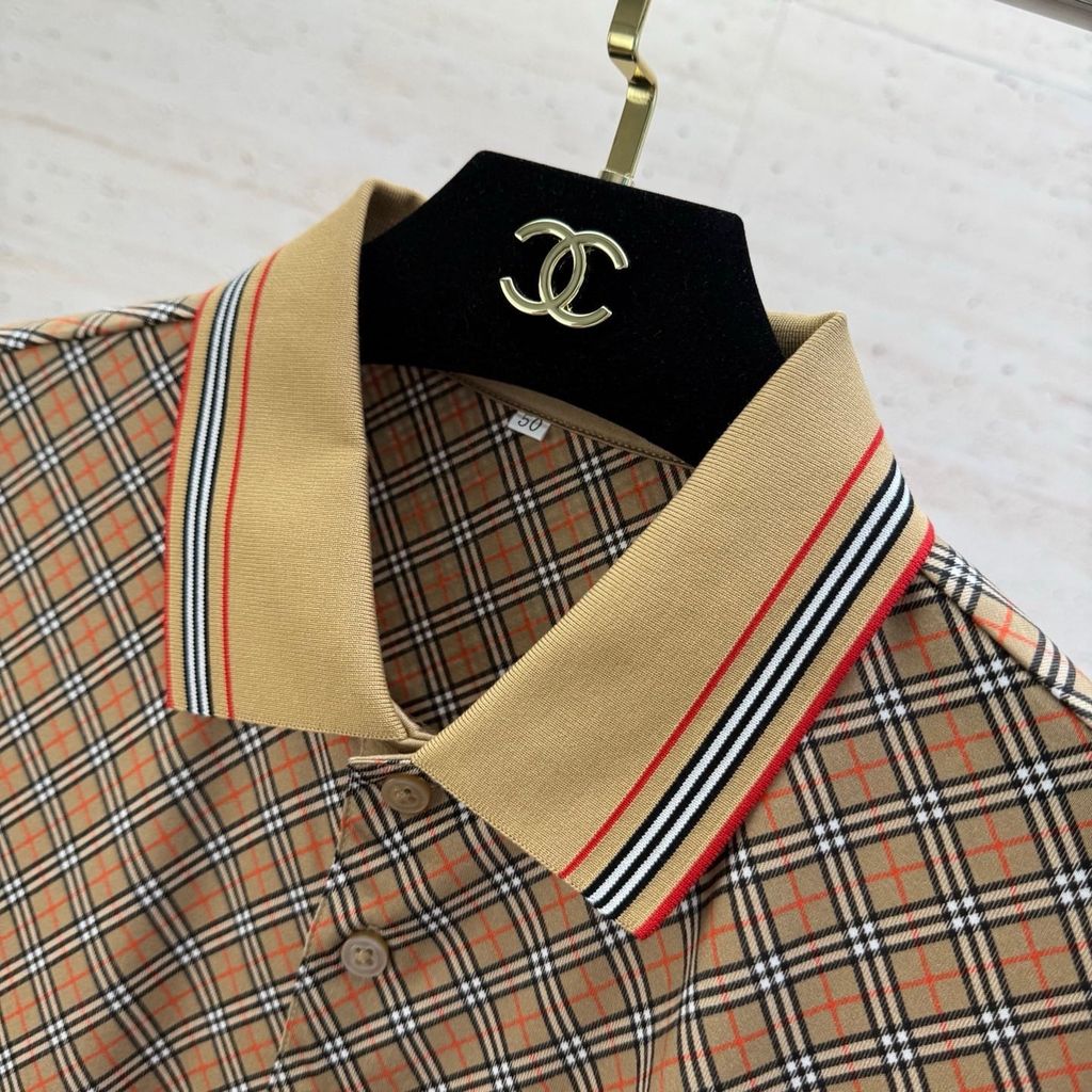 Một mẫu polo nhìn là thấy “sang gọn” ngay lập tức: hoạ tiết caro biểu tượng, logo micro trước ngực vừa đủ nổi bật, lên form lịch thiệp mà vẫn trẻ trung.