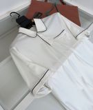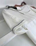 • Điểm nhấn nằm ở đường viền tương phản tại cổ áo, nẹp áo, túi ngực và tay áo, tạo hiệu ứng tinh tế nhưng vẫn đủ khác biệt.