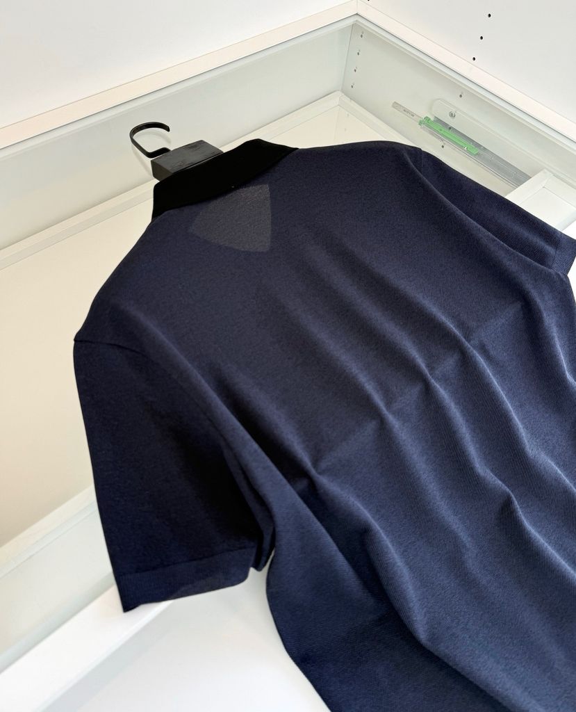 Một chiếc polo “nhìn là thấy xịn” nhờ phần cổ phối tương phản và phom đứng dáng gọn gàng. Tối giản nhưng có điểm nhấn rõ rệt, càng mặc càng ra chất.