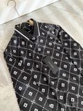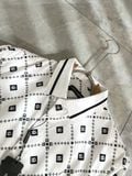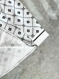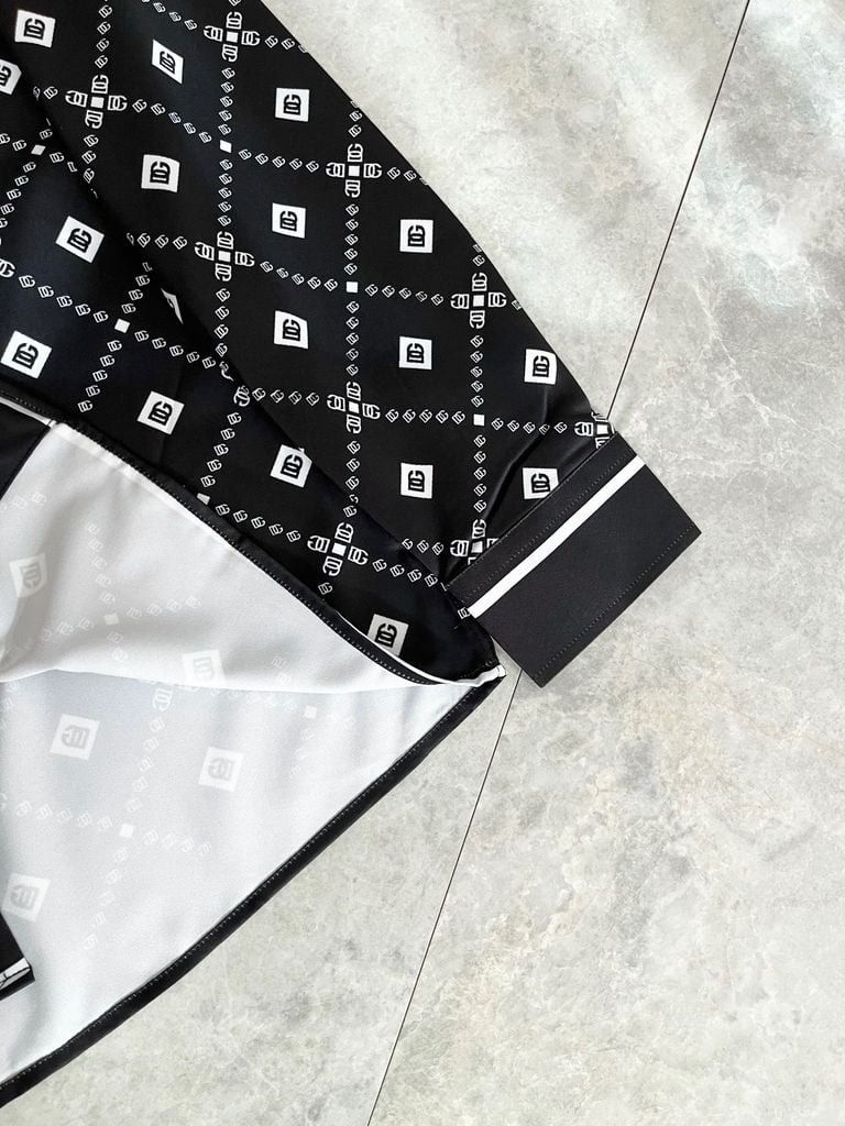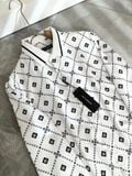 Một chiếc sơ mi “lên form là sang” đúng kiểu tối giản châu Âu: nhìn gọn gàng nhưng có chiều sâu nhờ hoạ tiết logo hình học và hiệu ứng chuyển sắc tinh tế, đủ nổi bật để tạo điểm nhấn mà vẫn giữ phong thái lịch thiệp.
