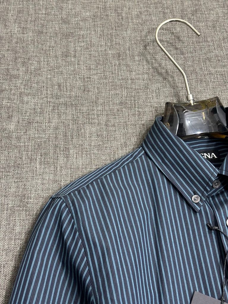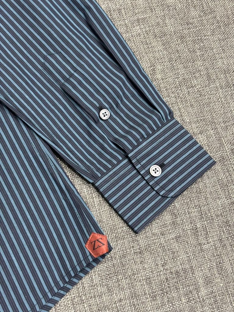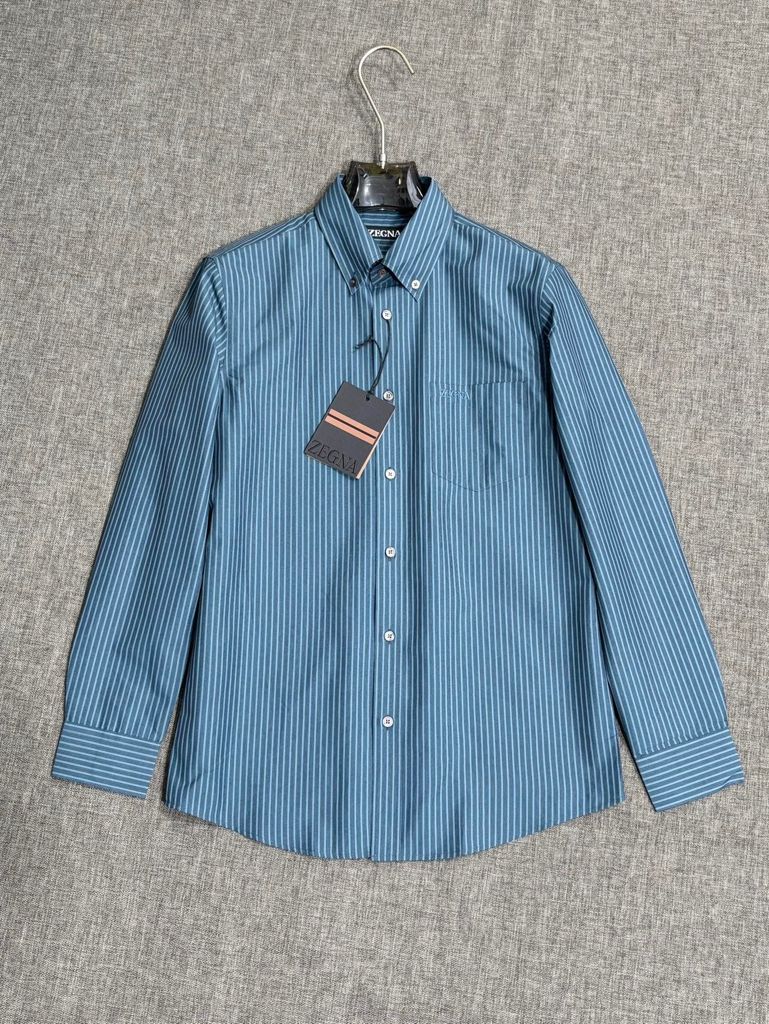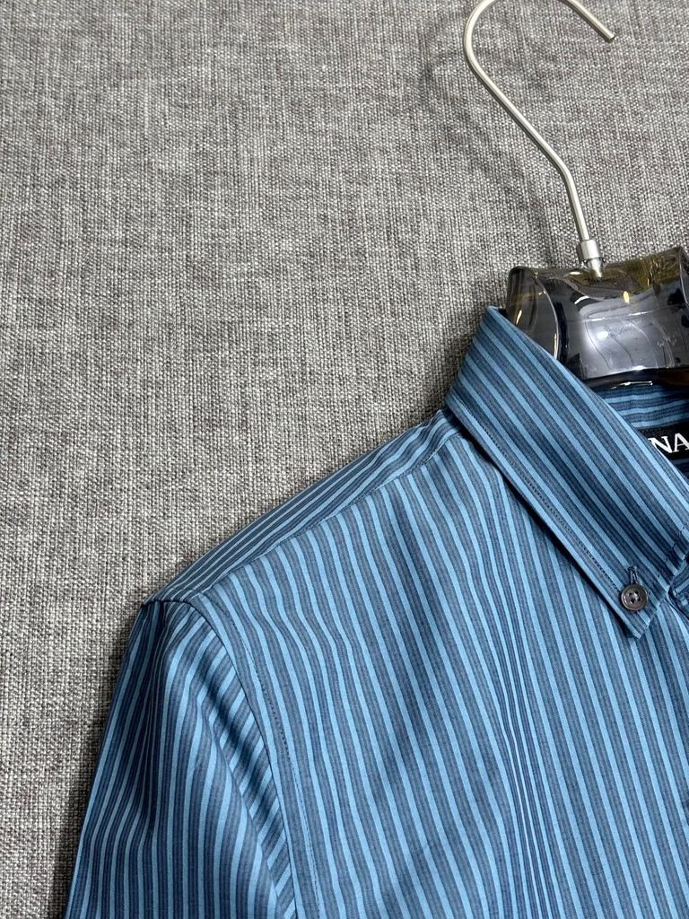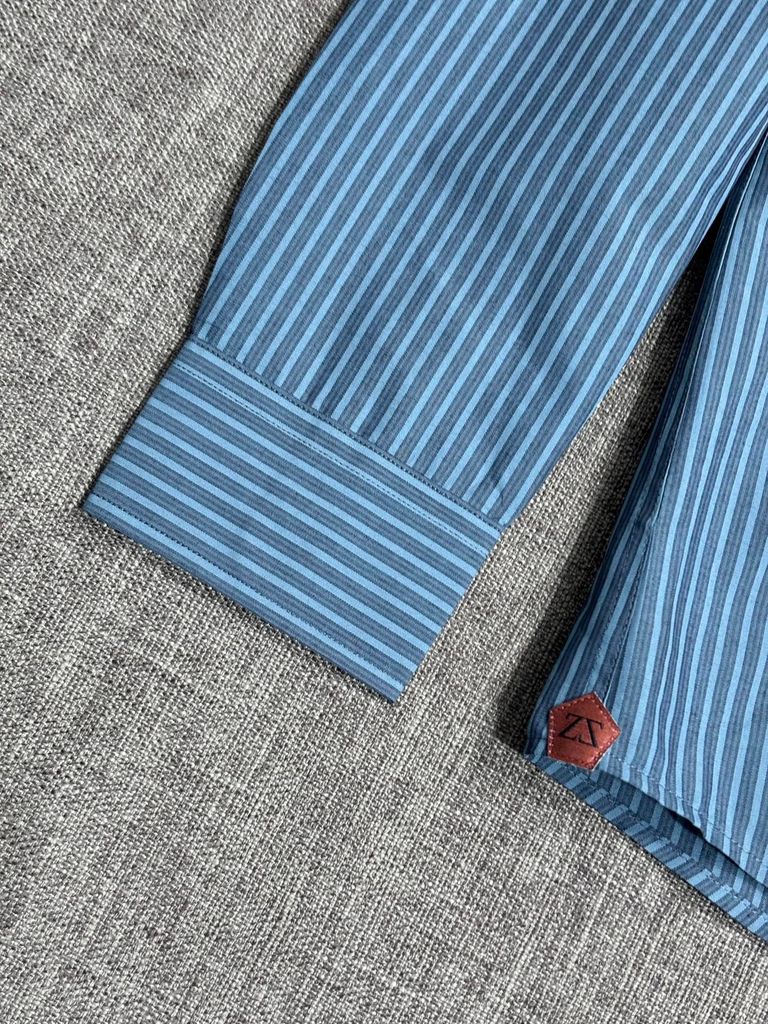 Một chiếc sơ mi kẻ xanh đúng chất nam tính Ý: chỉnh chu, hiện đại, dễ phối trong mọi lịch trình từ đi làm đến gặp gỡ đối tác.
