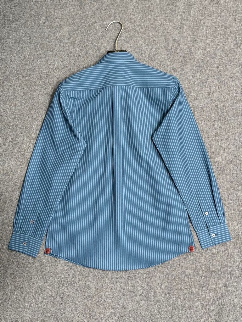 • Cổ button–down gọn gàng, tay dài bo cổ tay chỉn chu, dáng vạt bầu mặc sơ vin hay thả ngoài đều đẹp.