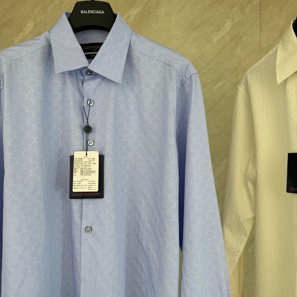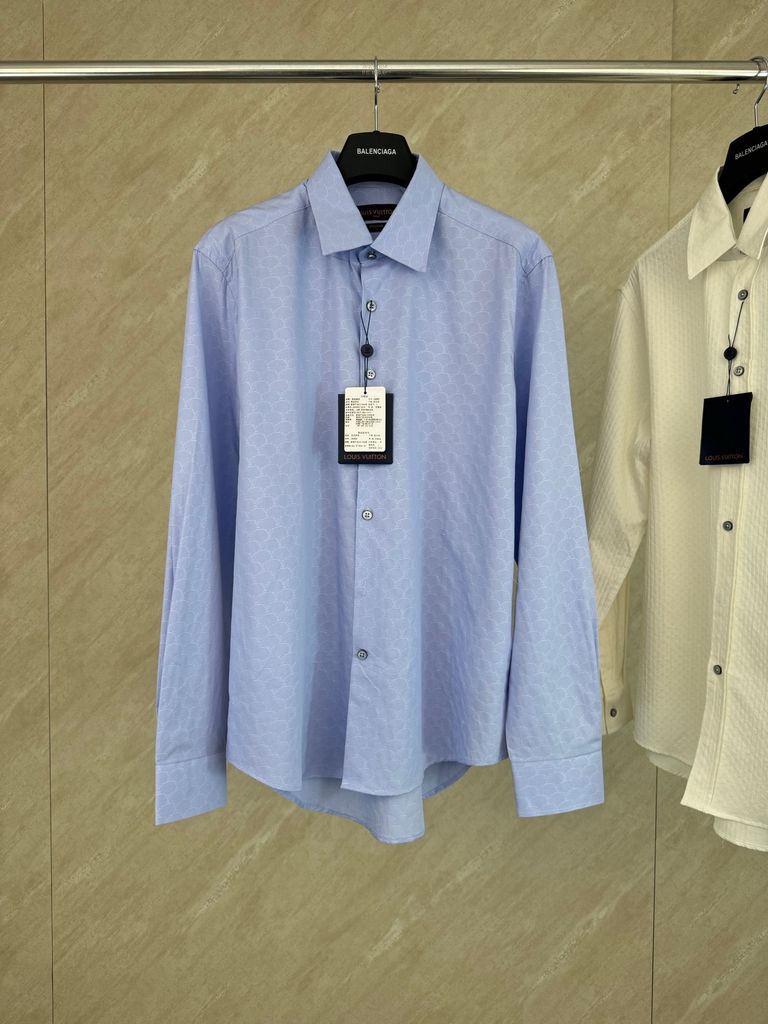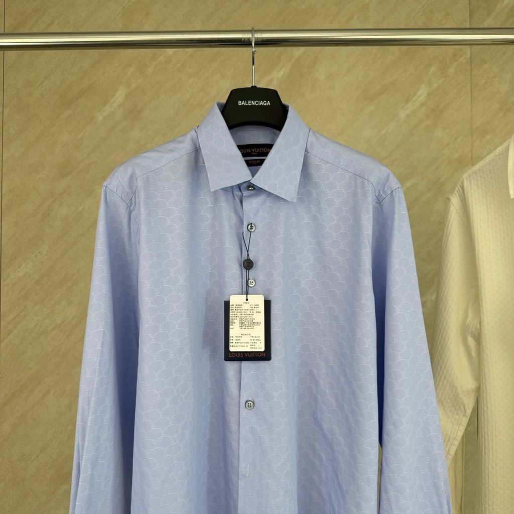 ÁO SƠ MI NAM L V JACQUARD LOGO DẬP NỔI TÔN DA – TÔNG XANH NHẠT DỄ MẶC, DỄ PHỐI BLAZER 1300K (HÀNG ORDER QUỐC TẾ)