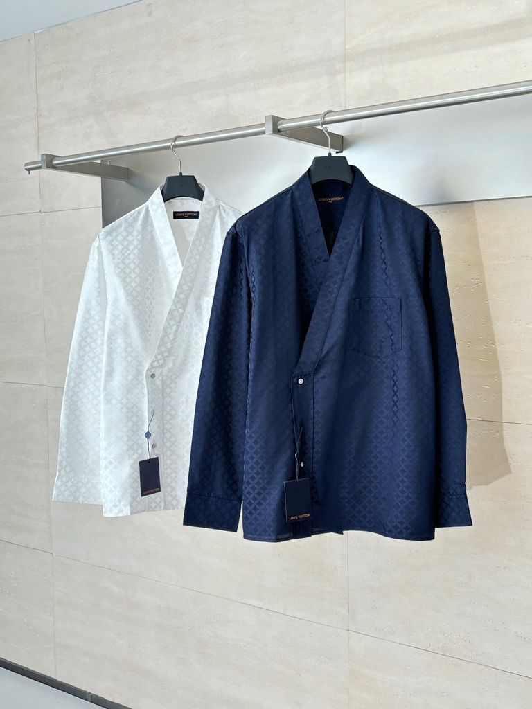 ÁO SƠ MI NAM L V JACQUARD MONOGRAM ẨN – CỔ V CÀI KHUY LỆCH ĐỘC ĐÁO, TỐI GIẢN SANG TRỌNG 1350k (HÀNG ORDER QUỐC TẾ)