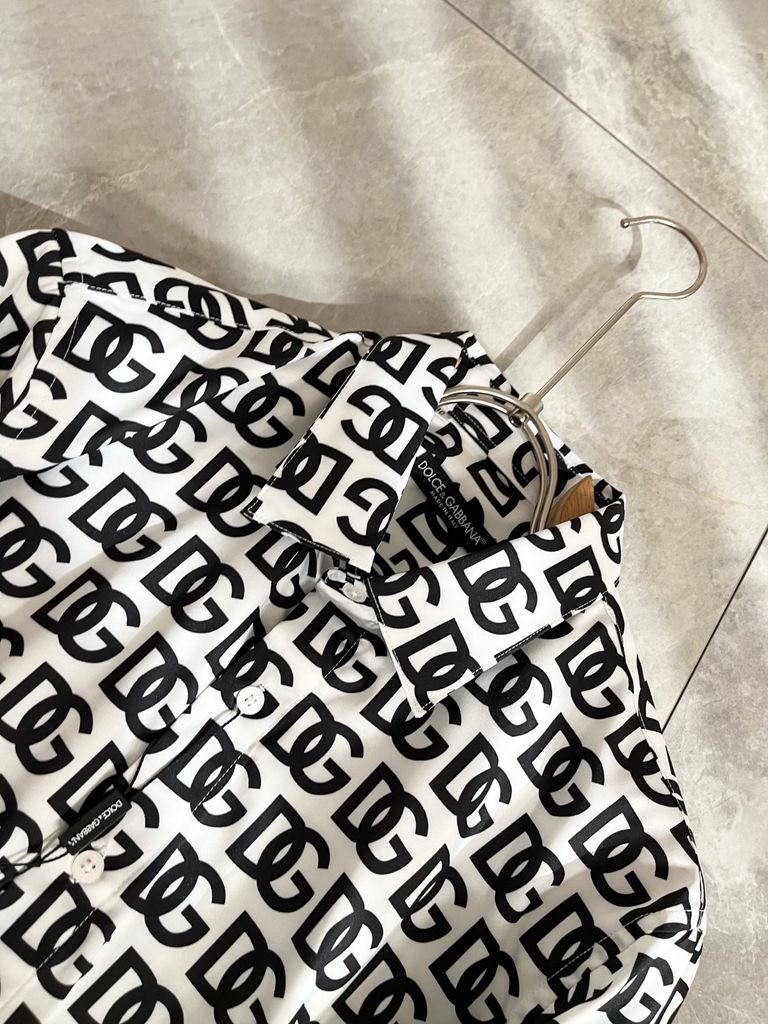 ÁO SƠ MI NAM NỮ DG HOẠ TIẾT LOGO CHỮ LỒNG PHỦ TOÀN THÂN – PHOM GỌN SANG, HIỆU ỨNG CHUYỂN SẮC 1250k (HÀNG ORDER QUỐC TẾ)