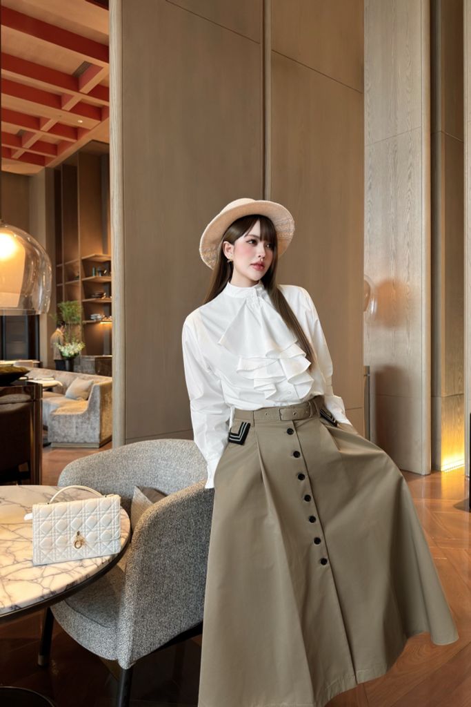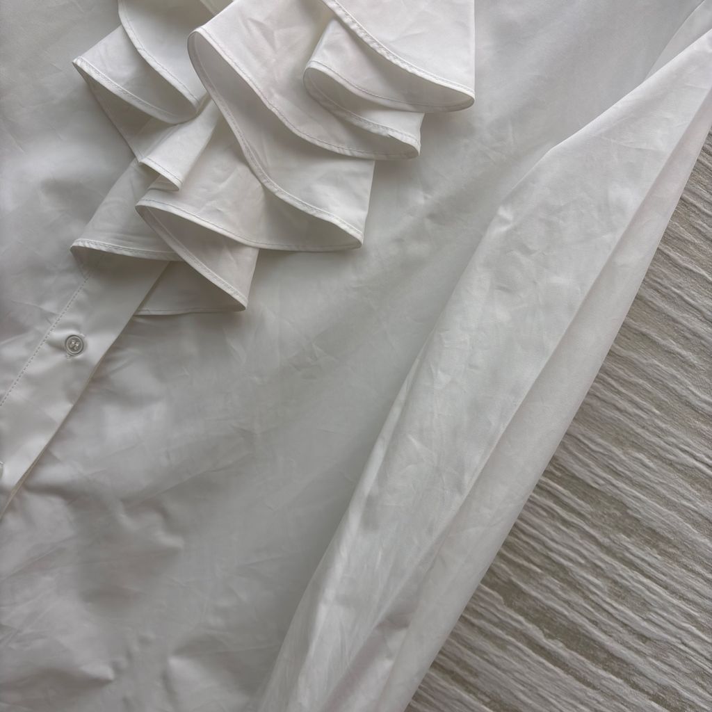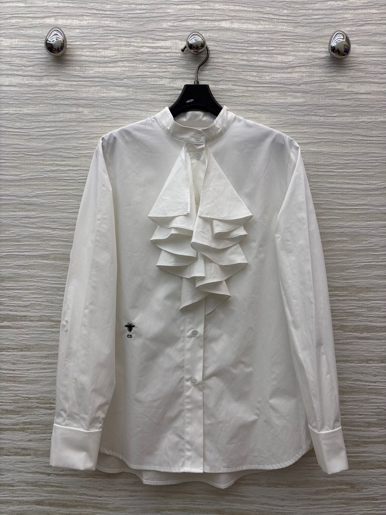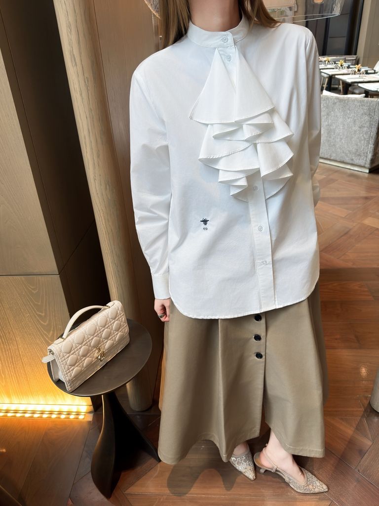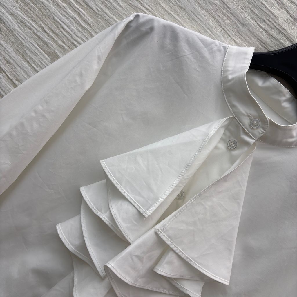 ÁO SƠ MI NỮ DIORR CỔ ĐỨNG BÈO TẦNG – PHIÊN BẢN TRẮNG THANH LỊCH 1300k (HÀNG ORDER QUỐC TẾ)