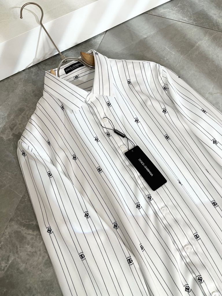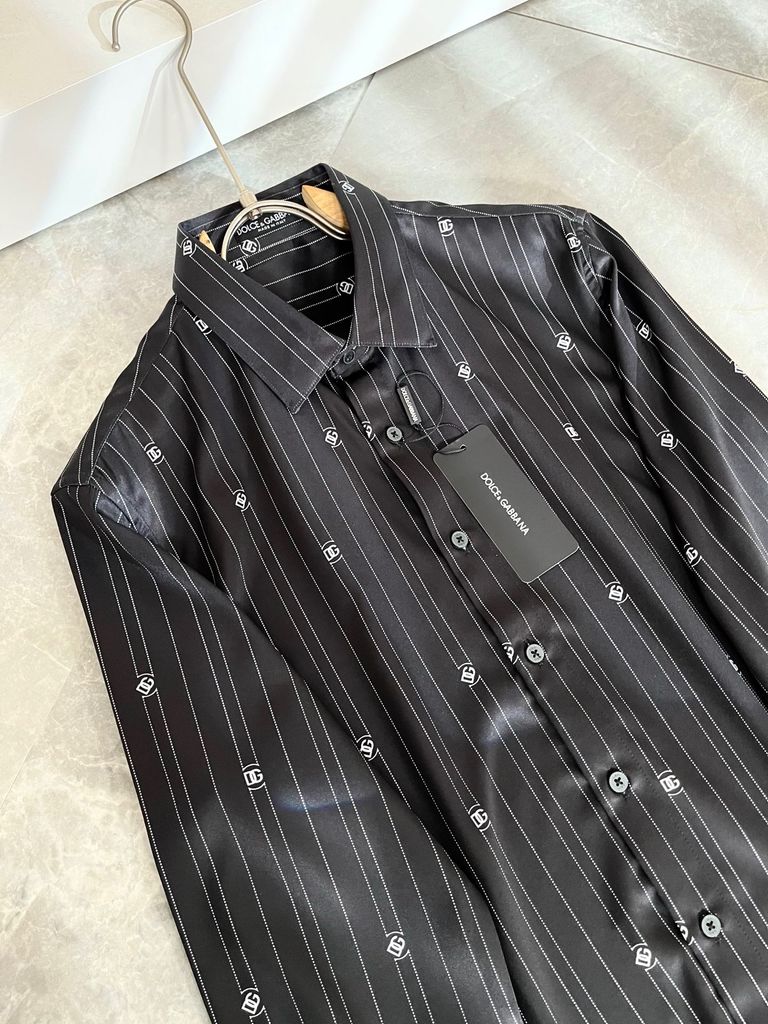 ÁO SƠ MI UNISEX DG KẺ SỌC LOGO MINI – HIỆU ỨNG CHUYỂN SẮC TINH TẾ, FORM ĐỨNG SANG 1250k (HÀNG ORDER QUỐC TẾ)