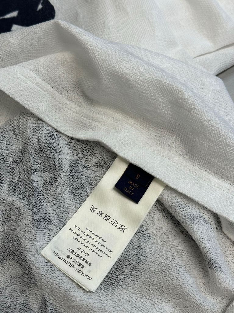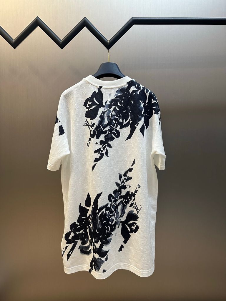 Một mẫu áo thun gây ấn tượng ngay từ cái nhìn đầu tiên nhờ bề mặt jacquard Monogram dệt nổi kết hợp mảng họa tiết nghệ thuật đặt vị trí đầy cuốn hút.