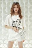 • Bố cục hình in trải mặt trước tạo hiệu ứng thị giác mạnh, giúp mẫu áo nổi bật ngay cả khi phối theo kiểu tối giản.
