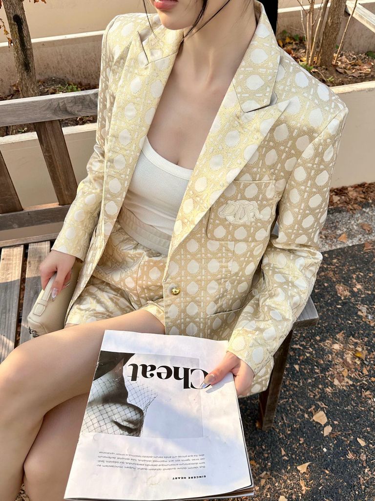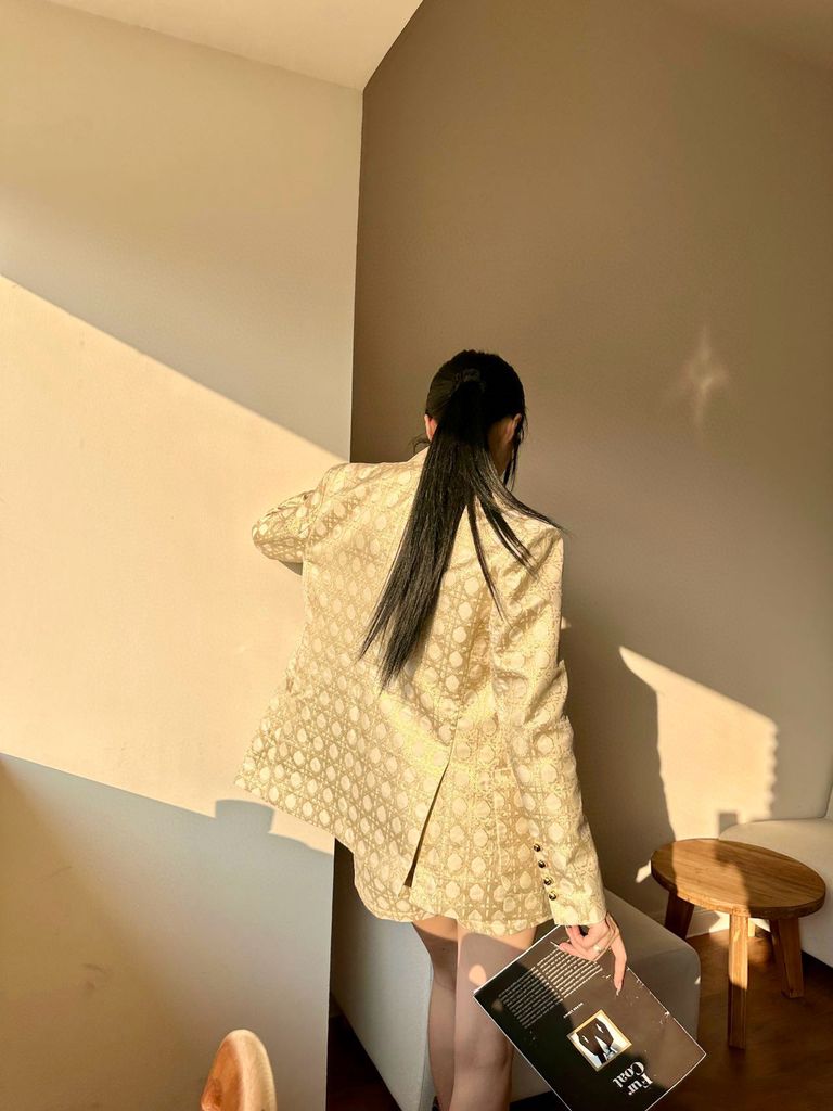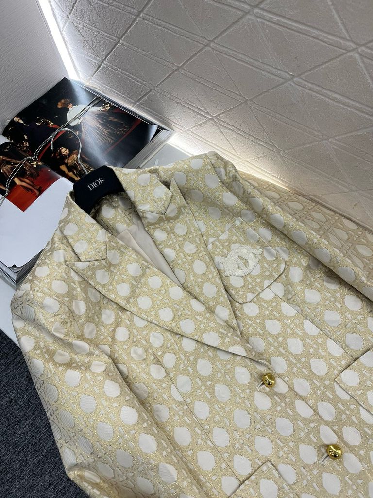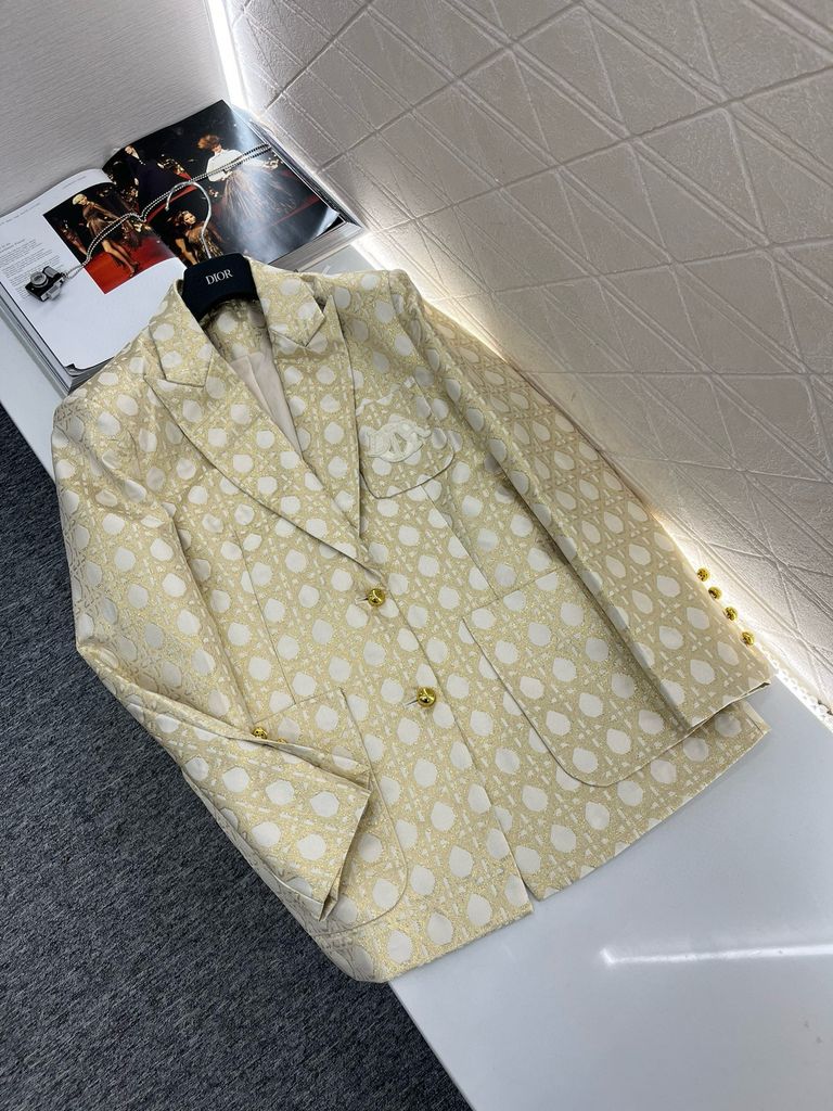Áo vest nữ Di*or* hoạ tiết cannage 2 màu đẹp sang 2050k khoác vest nút vàng jacquard tùy chỉnh YB jacquard phù hợp với chất liệu kết cấu ánh sáng ve áo cao cấp phù hợp với may túi sáng và một hàng khuy măng sét vang lên logo thêu thương hiệu trên ngực phong cách đơn giản và thanh lịch in toàn bộ đường kẻ sọc hoa văn jacquard Miệng sâu và các túi bên hông dung tích lớn tạo thêm điểm nhấn về thiết kế, phong cách phương Tây cao cấp, chiều dài vừa phải và đường cắt rộng, che đi đường hông và đũng quần, xẻ ngắn ở viền áo, cải thiện khả năng chịu đựng của cơ thể, tăng thêm sự thanh lịch và quyến rũ quý phái, đi làm và tham dự Những dịp quan trọng, thể hiện gu thẩm mỹ sang trọng, phụ kiện bề mặt tùy chỉnh, phiên bản chính xác, phiên bản cao cấp, 2 màu SML